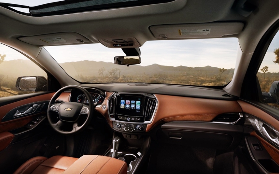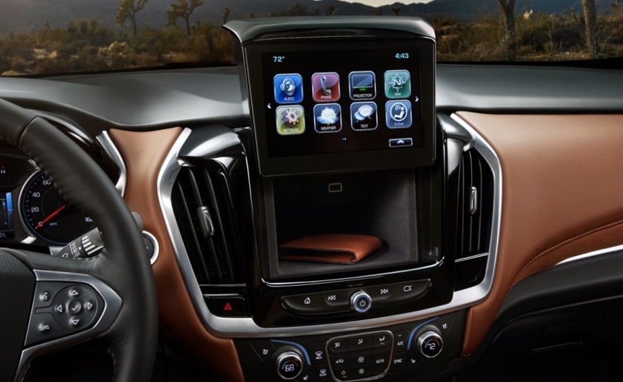 트래버스의 실내 인테리어는 스마트한 느낌으로 제작이 되었습니다. 태블릿을 집어넣은 듯한 내비게이션은 위로 올릴 경우 뒷 공간을 사용할 수 있습니다. 내비게이션의 경우 안드로이드 오토 연동이 가능한 인포테인먼트 시스템을 지원하고 있으며, 무선 충전 시스템으로 더욱 편의사양을 올렸습니다.
