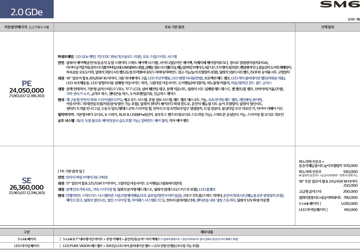 2020 르노삼성 SM6의 판매 가격은 2153만 원~3431만 원으로 책정이 되었습니다. 자세한 SM6 가격은 아래의 가격표를 참고하시면 도움이 될 것 같습니다. 또한, 사진 이미지가 잘 안보이시는 분은 첨부파일을 다운로드하여 보시면 도움이 될 것 같네요.