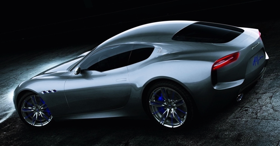 콘셉트로 보는 알피에리의 디자인을 살펴보면, 전면부 디자인은 카리스마 넘치는 악당의 얼굴을 보는 것 같습니다. 그 정도로 인팩트가 강한 얼굴입니다. 마세라티의 전형적인 아이덴티티가 담겨있는 라디에이터 그릴은 음각의 형태로 되어 있는데, 중앙에는 마세타리의 상징인 삼지창 엠블럼이 고급스러움을 더욱 업그레이드시켜주고, 세로바 형식의 크롬을 사용하여 깔끔한 인상을 줍니다. 헤드램프는 마치 악당의 눈과 같은 인상인데요. 날카롭게 올라간 헤드램프는 매우 인상적이네요. 프런트 범퍼 하단에도 공기 흡입구 길게 넣어 고성능 자동차의 이미지를 가지고 가고 있습니다.
