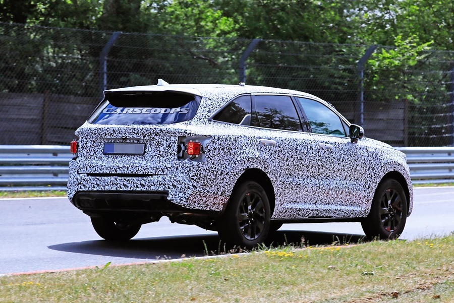 후면부의 경우 많이 공개가 되지 않았기 때문에 예상도가 확실하게 나온 것 같지 않은데요. 아무래도 사진을 못 찍게 하기 위해 위장막이 두터웠기 때문에 포착이 힘들었을 것 같네요. 테일램프의 경우 기존 유선형의 디자인을 대신하여 더욱 얇고 직선이 강조된 느낌으로 헤드램프와 통일감을 주고 있고, 다른 부분은 기존 쏘렌토와 비슷한 느낌으로 예상도가 나왔네요. 하지만, 실제 차량이 나왔을 때는 풀체인지 모델이기 때문에 많이 다를 것 같아요.