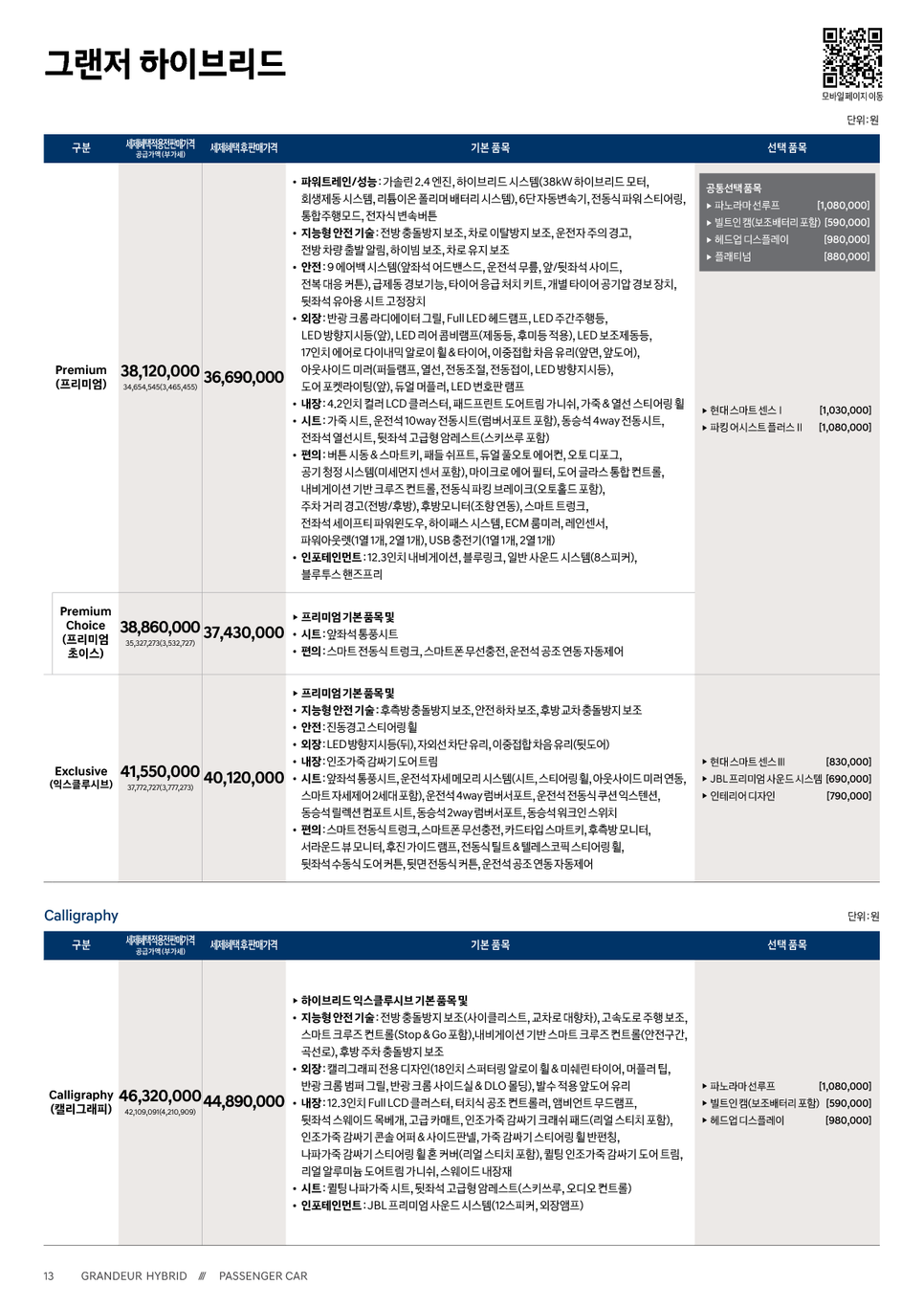 현대자동차 2020 그랜저 하이브리드의 판매 가격은 3740만 원~4575만 원으로 책정이 되었어요. 자세한 가격은 아래의 가격표를 참고해주세요.