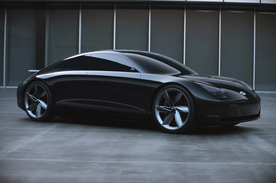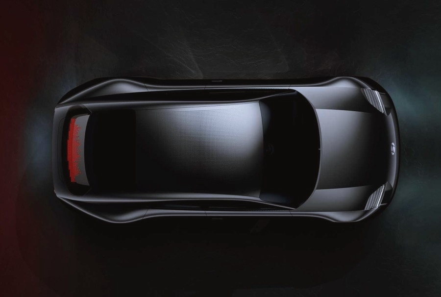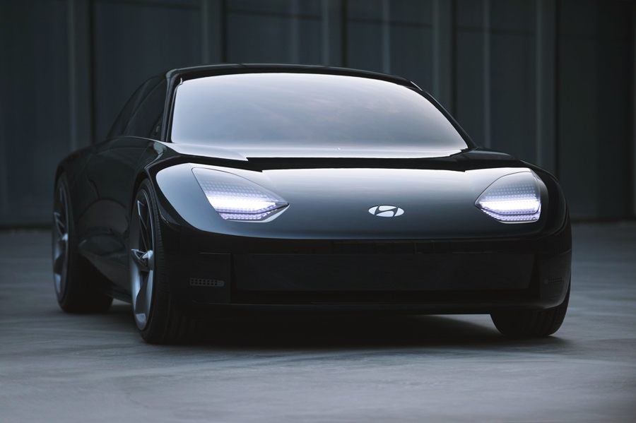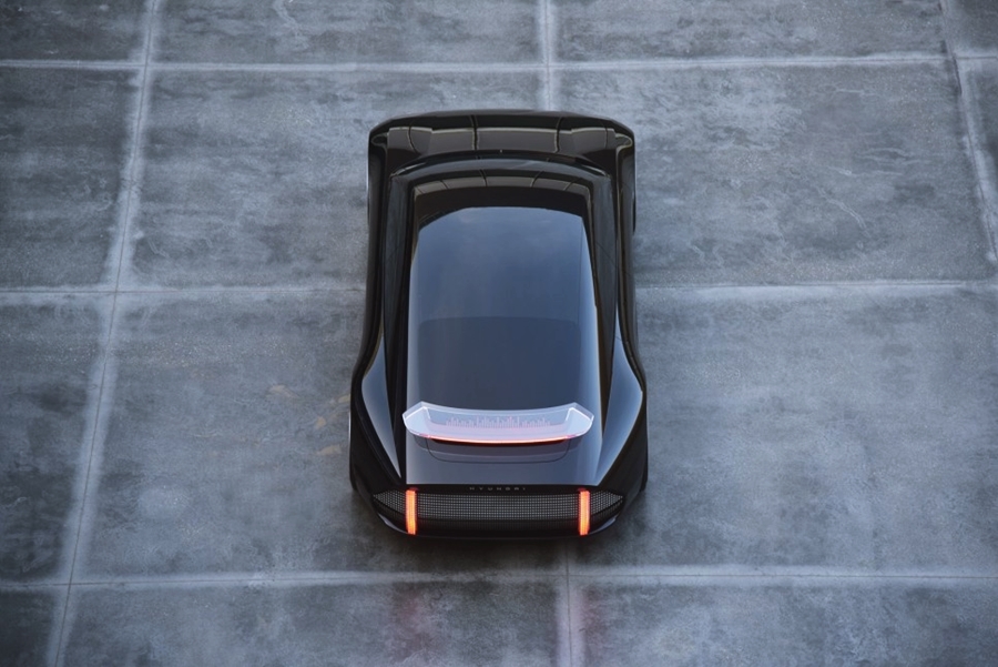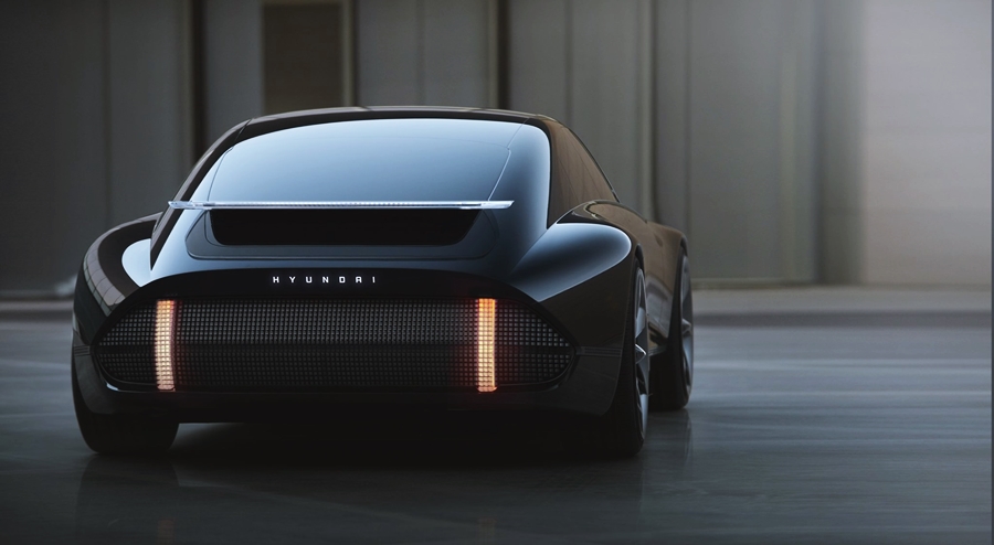 전면부 디자인은 마치 미래에서 온 자동차의 느낌이 드네요. 매끄러운 듯한 느낌의 부드럽게 넘어가는 후드라인과 스포티한 헤드램프 디자인 그리고 중앙에 새로운 느낌의 현대의 엠블럼까지 매우 독특한 형태의 차량 디자인이네요. 마치 테슬라 전기차 모델과 흡사한 느낌을 주면서도 미묘한 느낌이 있네요. 아무래도 공기역학적인 부분에서 비슷한 느낌이 있는 것 같아요.