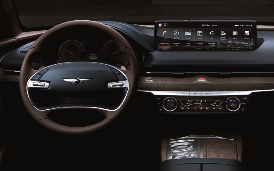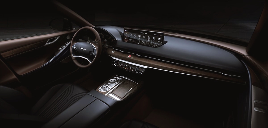 센터패시아 상단으로는 14.5인치의 와이드 한 대형 인포테인먼트 스크린이 적용되어 광활한 디스플레이를 감상할 수 있으며, 센터 콘솔 부분에도 터치 방식으로 공조 조절 장치를 적용하여 더욱 편리하게 사용할 수 있게 되었습니다. 그리고 다이얼 방식의 전자식 변속레버를 채택하여 디자인 요소와 공간의 효율성 그리고 조작의 편의성까지 높였습니다. 그밖에 필기 인식 컨트롤러 등의 첨단 사양을 포함하고 있어 국산 프리미엄 세단의 끝판왕이라는 것을 증명하는 것 같습니다.