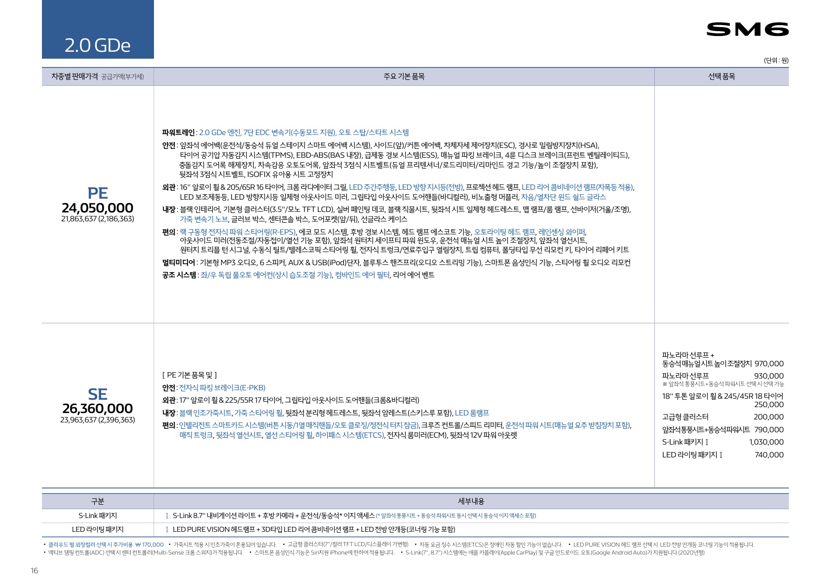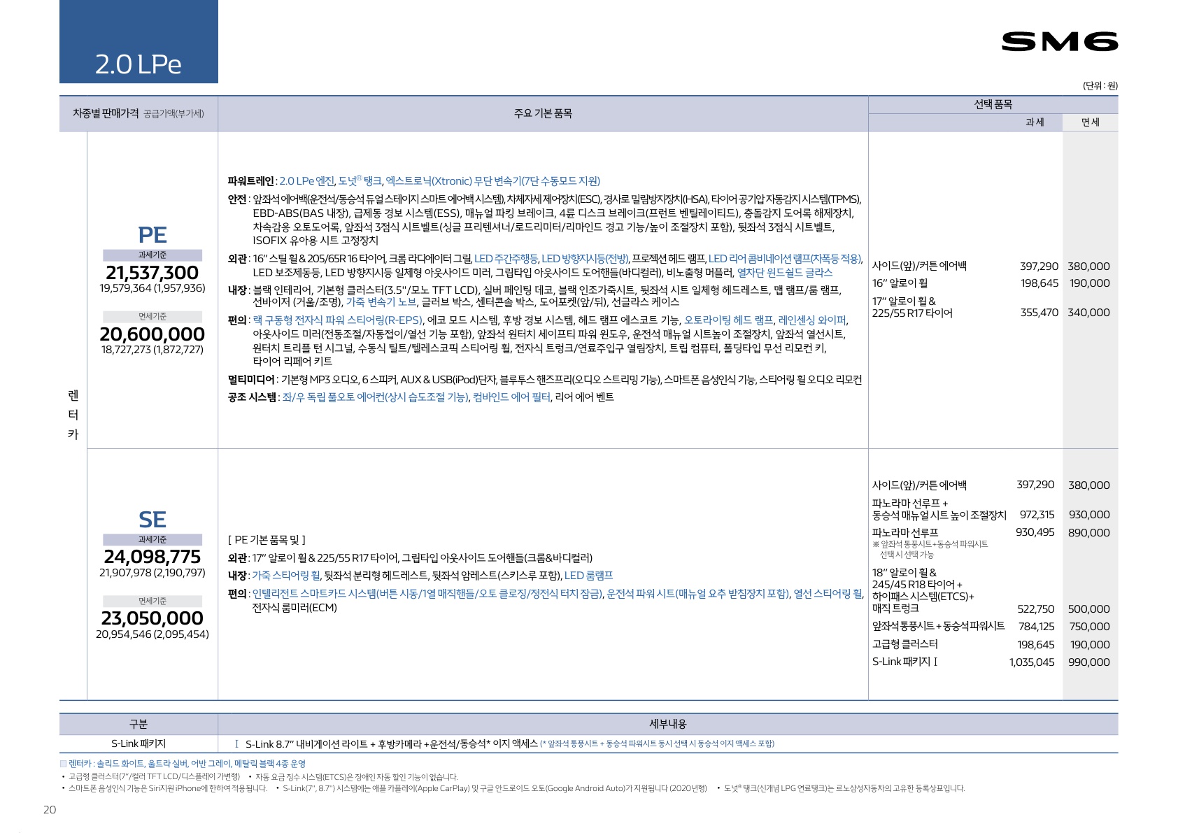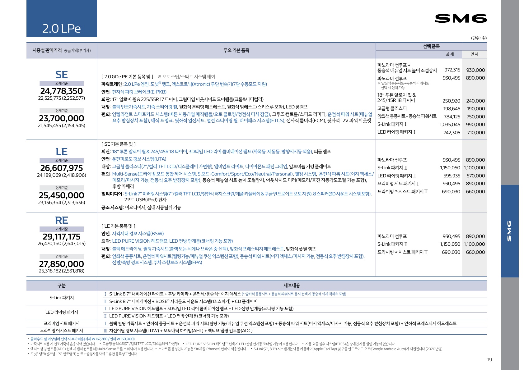 <참고>추가로 현재 2020년 3월 기준 2020 SM6 가격은 2346~3212만원으로 책정이 되었습니다. 자세한 가격은 아래의 가격표를 참고해주세요.