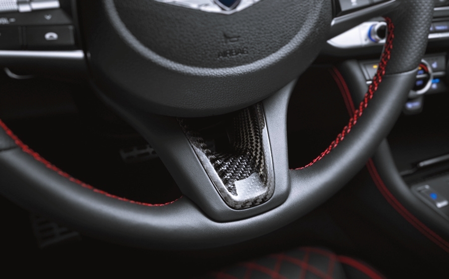 2020 신형 제네시스 G70 2.0 터보 모델에서는 상당히 많은 신경을 쓴 모습인데요. 2.0 가솔린 터보의 경우 아웃 가이드 미러, 내부 콘솔, 스티어링 휠 베젤 등에 리얼 카본 소재를 적용한 얼티밋 패키지 1, 3.3 가솔린 터보에는 미쉐린 PS4S 타이어와 브렘보 브레이크 그리고 로우 스틸 패드 등의 다이내믹한 드라이빙에 특화된 얼티밋 패키지 2,3 사양을 선택 가능하다고 하네요.