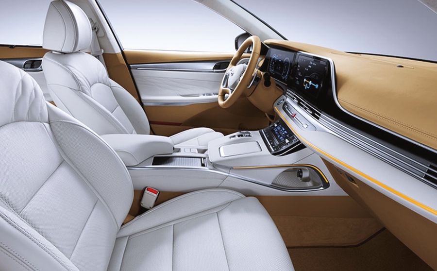 실내 인테리어는 기존의 준대형 세단이라고 볼 수 없는 멋진 디자인을 가지고 있는데요. 그 이유는 아무래도 조금 더 고급스러운 소재의 사용과 질리지 않는 디자인 요소 그리고, 12.3인치 클라스터와 12.3인치 인포테인먼트 디스플레이 디자인 때문인 것 같아요. 클라스터와 디스플레이가 경계가 없는 심리스 스타일의 디자인을 적용하여 미래지향적인 느낌도 들지만, 깔끔한 심플한 느낌도 들어 마음에 드네요. 디스플레이 하단으로는 송풍구를 얇게 디자인하였고, 각종 버튼을 인체공학적으로 배치하여 더욱 편리한 조작을 할 수 있게 만들었네요.