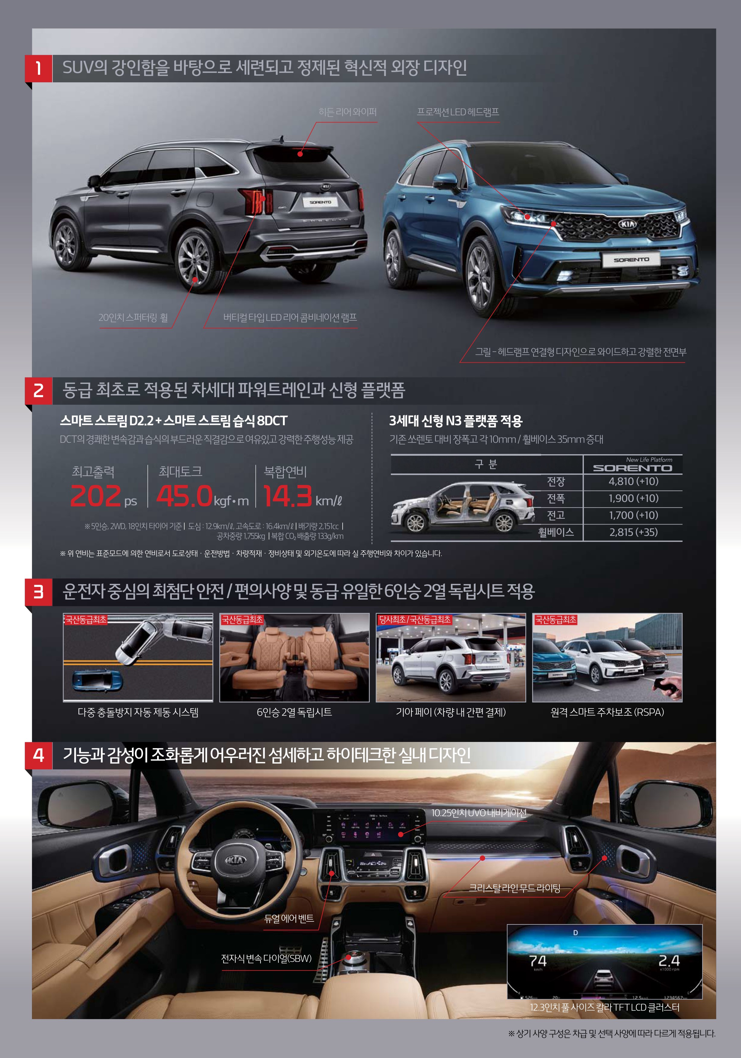 기아자동차의 중형 SUV 쏘렌토는 4세대 모델로 지금까지 사랑을 받는 모델인데요. 쏘렌토는 기존 3세대 출시 이후 6년 만에 풀체인지 되는 모델이라 더욱 많은 관심을 받았고, 프로젝트명 MQ4로 하이브리드, 디젤, 가솔린 차량으로 출시를 하였어요. 사전계약은 매우 성공적이었는데요.