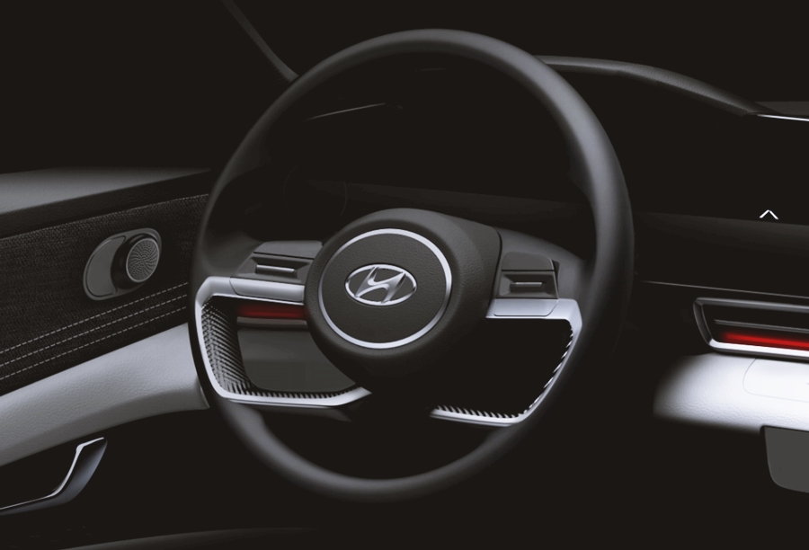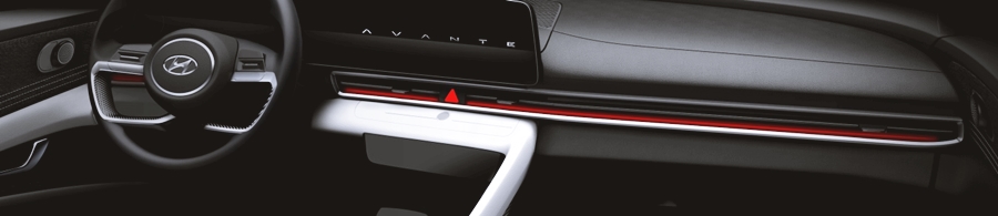 이번 아반떼 풀체인지 7세대 모델의 티저 이미지에는 전면 이미지는 없었지만, 영상에서 잠깐 스쳐가는 모습으로 볼 수 있었는데요. 그 모습을 보면, 기존 삼각떼와는 다른 모습으로 정교하게 디자인된 것을 알 수 있었어요. 빛의 변화에 따라 보석처럼 입체적으로 반짝이는 파라메트릭 쥬얼 패턴의 라디에이터 그릴과 함께 통합된 형태의 넓고 낮아진 비율의 헤드램프는 차량의 강렬한 인상을 주고 있는 모습이었어요.
