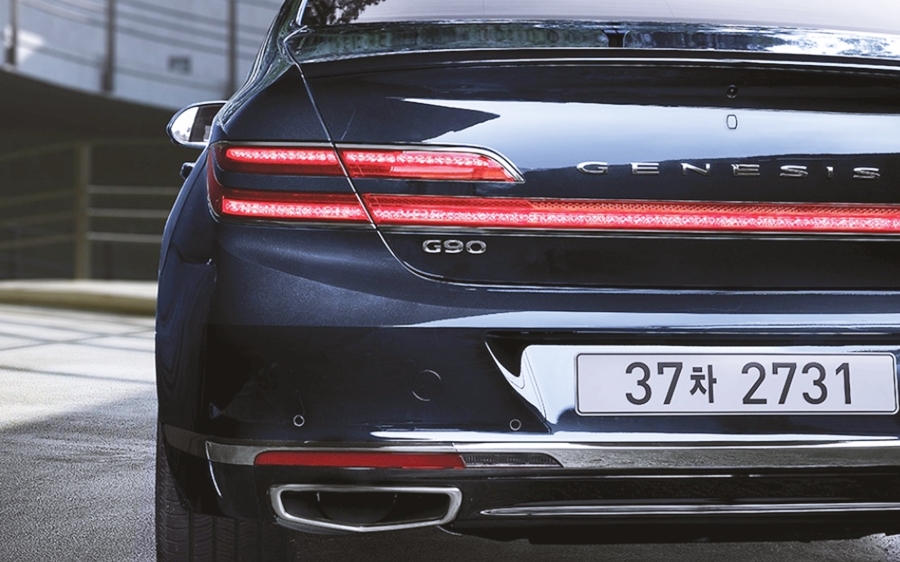 후면부에는 제네시스 엠블럼을 대신하여 제네시스 레터링을 넣어 제네시스 브랜드 이미지를 더욱 올려주네요.