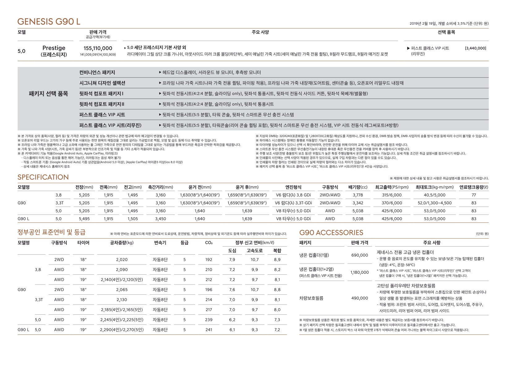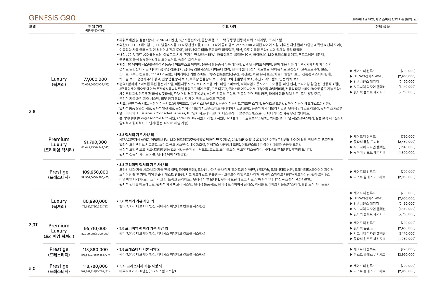 2020 제네시스 G90의 판매 가격은 7707만 원~11957만 원으로 책정이 되었어요. 자세한 가격은 아래의 가격표를 참고해주세요.