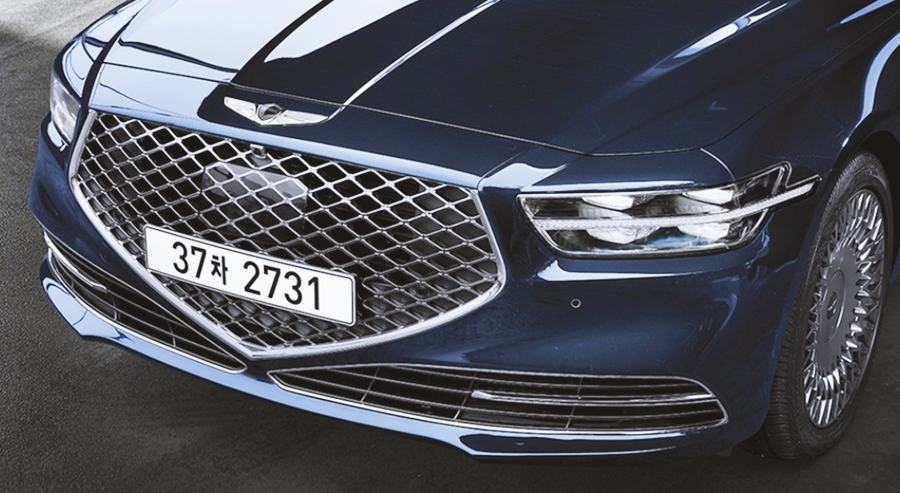 전면부 디자인은 제네시스의 패밀리룩이 반영되어 고급스러운 느낌을 보여주고 있는데요. 특히, 전면을 가득 채우고 있는 크레스트 라디에이터 그릴은 오각형의 모형으로 마치 방패를 연상시키는 것 같아요.