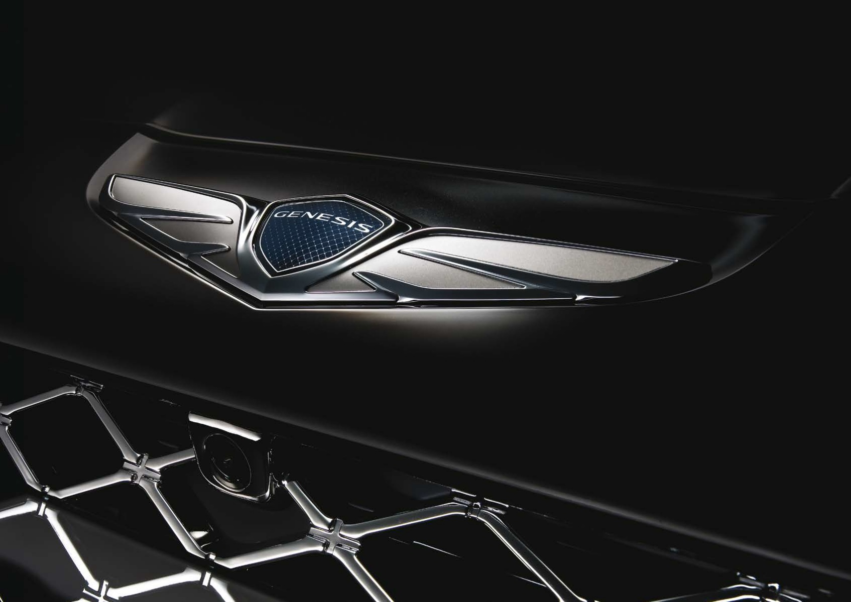 후드 부분에는 제네시스를 상징하는 엠블럼이 적용되었는데, 이는 엠블럼이 더욱 강조될 수 있도록 굴곡이 있어요. 이로 인해 더욱 브랜드 이미지가 강조가 되는 것 같네요.