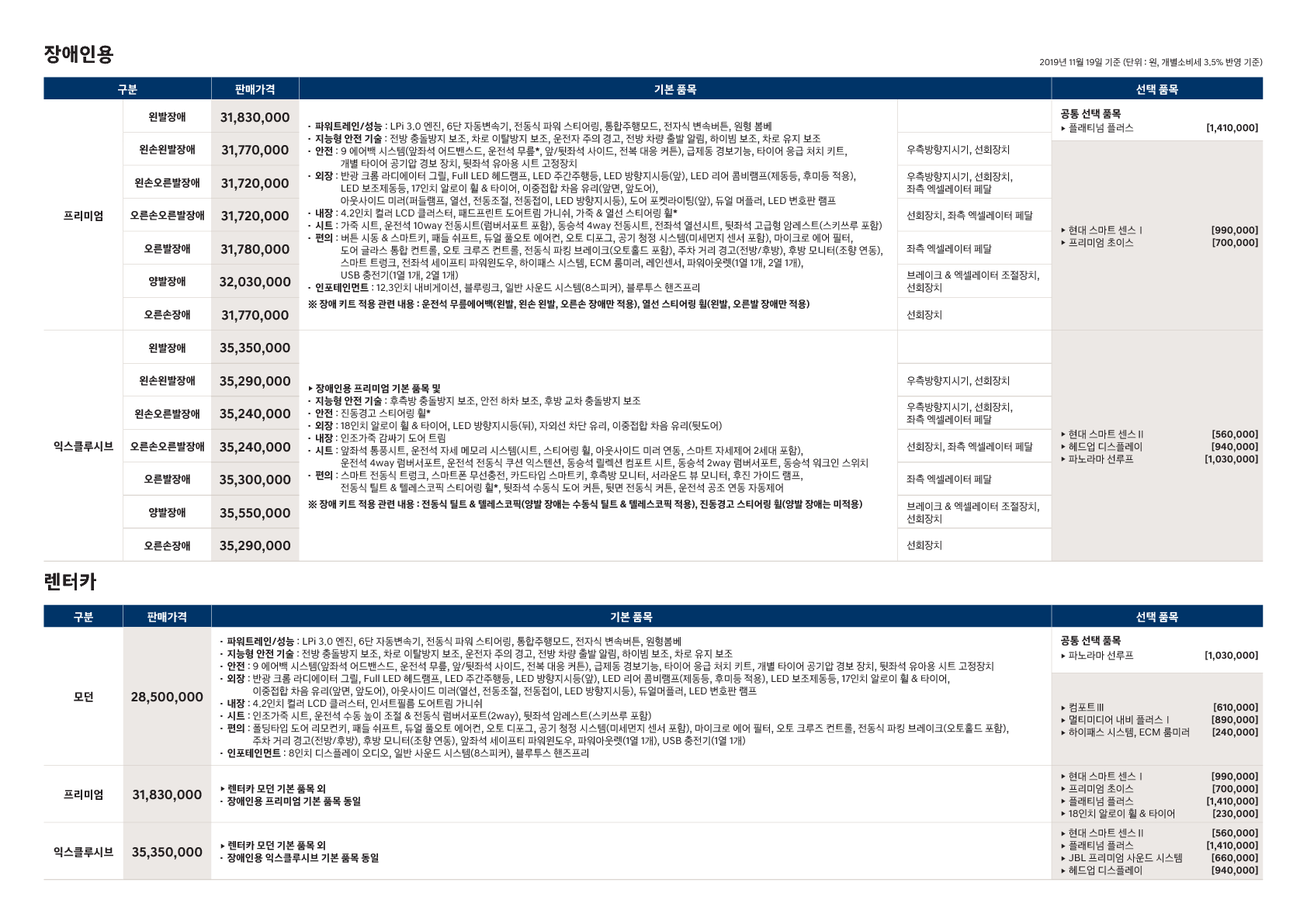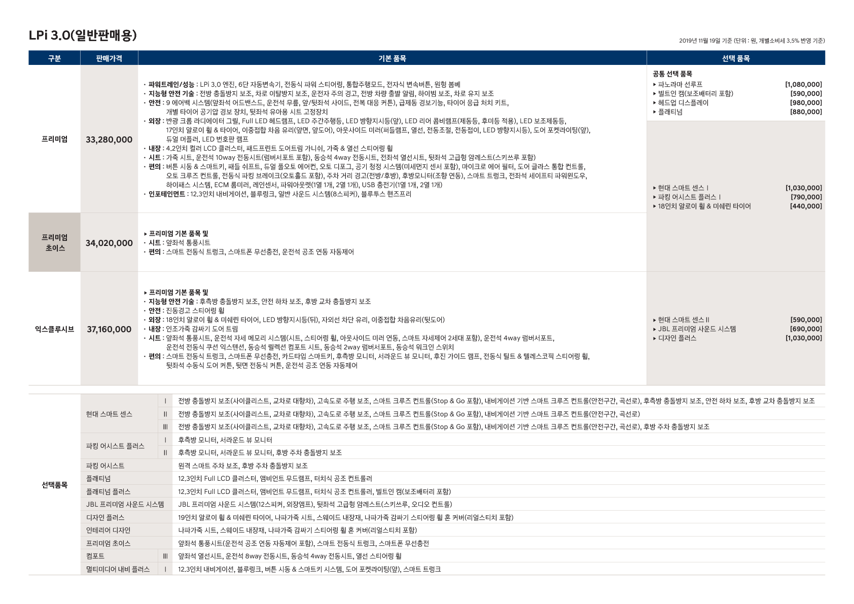 <그랜저 가격표3>