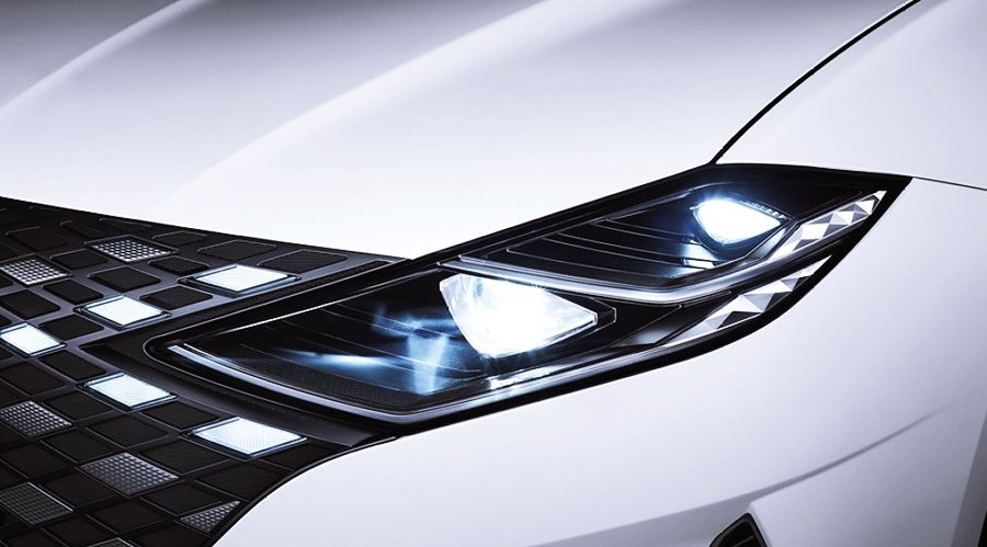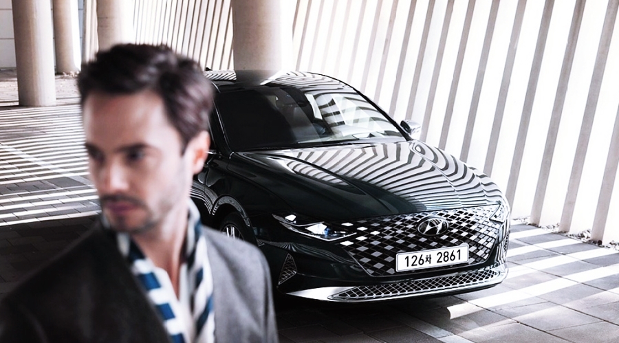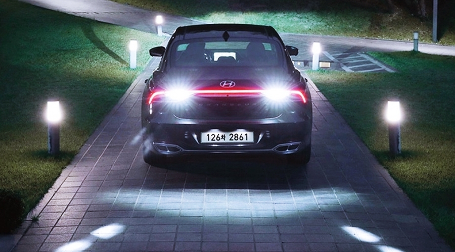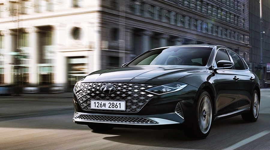 차량의 디자인을 간단히 살펴보면, 신형 그랜저의 전면부는 현대자동차의 패밀리룩을 이어가고 있지만, 다이아를 연상시키는 전면 그릴이 신비한 느낌을 주고 있어요. 전면의 그릴에는 파라메트릭 쥬얼이라는 패턴을 넣어 더욱 보석처럼 빛나며, LED 헤드램프와 데일 라이트가 하나로 연결된 느낌으로 고급스러운 전면부 디자인을 완성했어요.