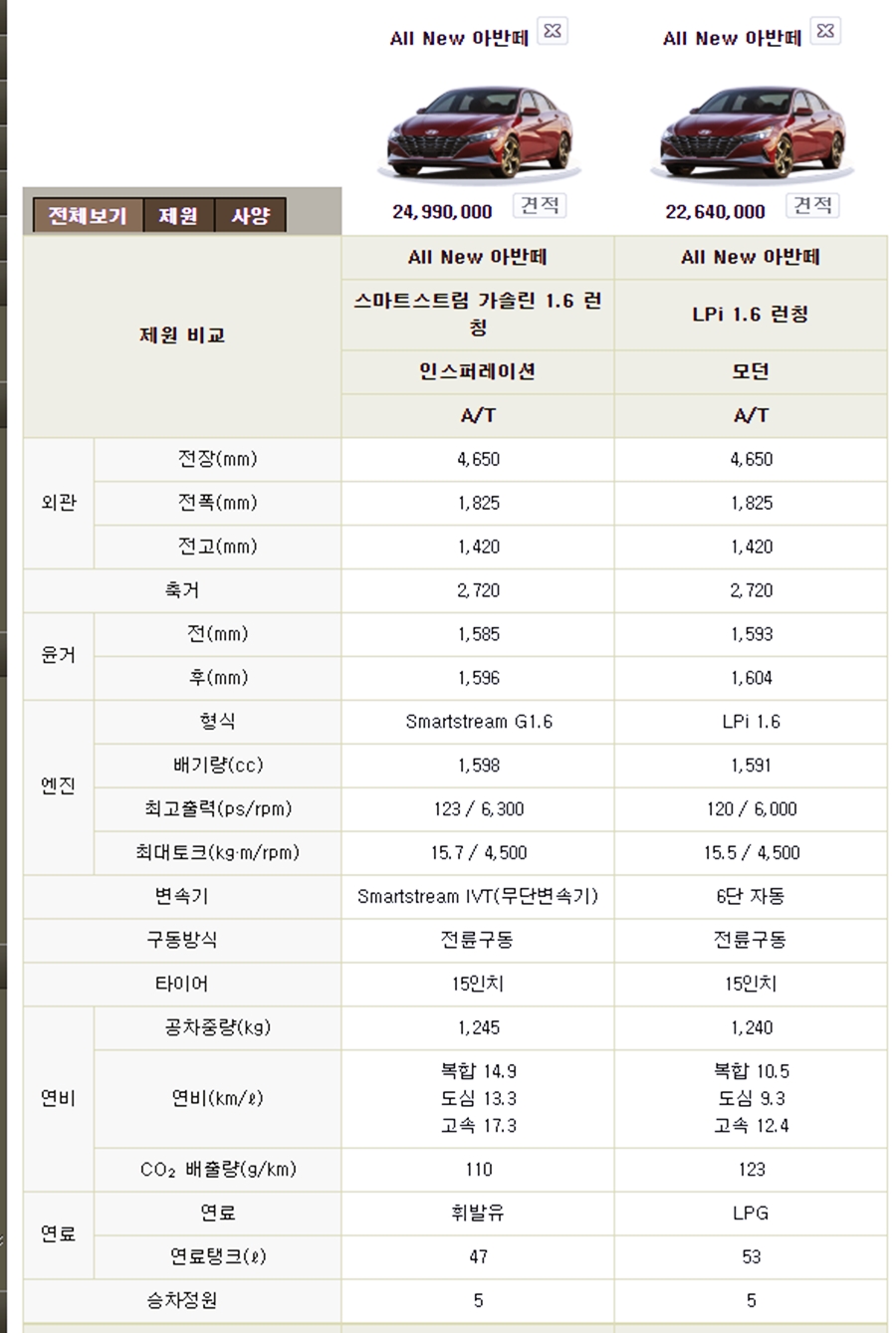 아반떼 가격표 최종본