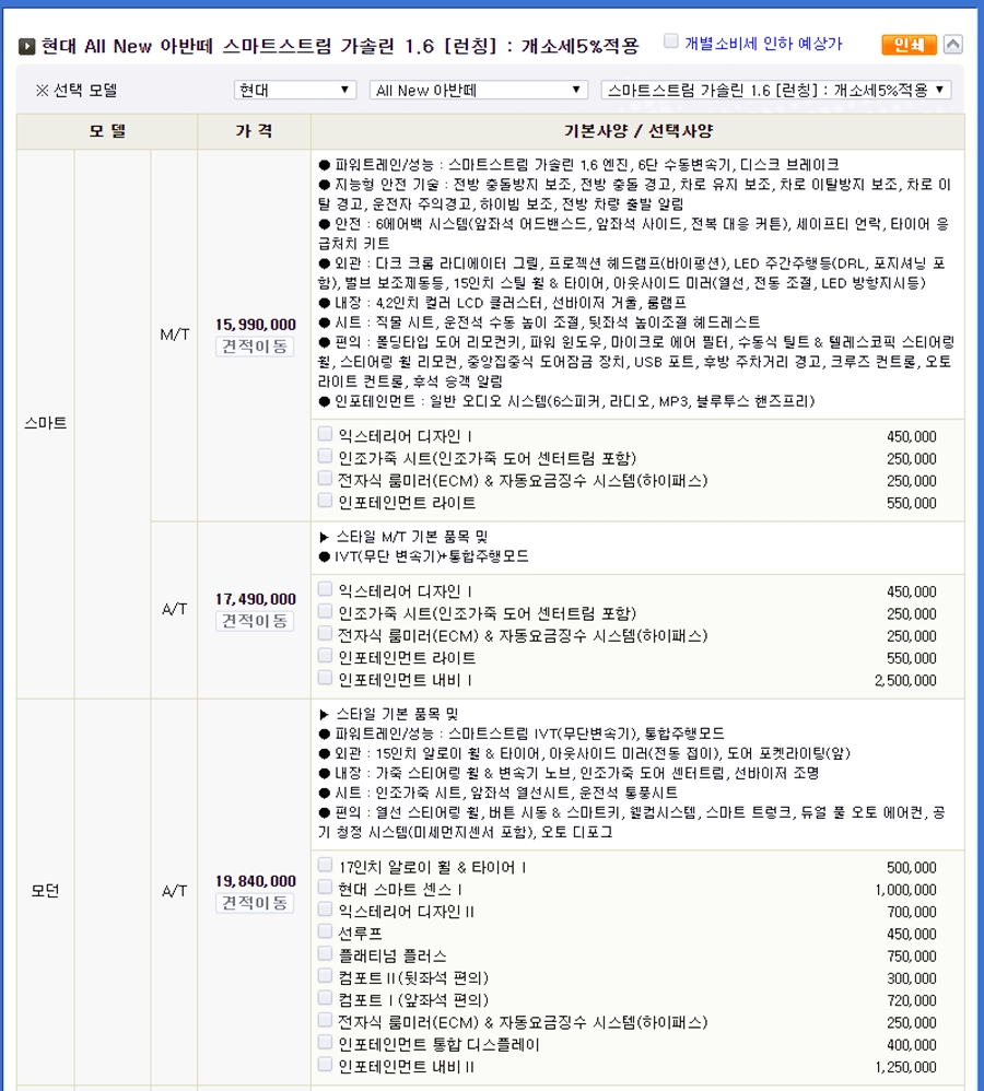 아반떼 가격표3