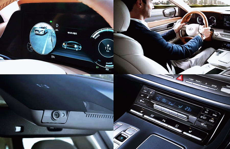 신형 더 뉴 그랜저에는 고전압 배터리 용량을 기존보다 23% 올렸으며, EV 모드 가동 범위를 120km/h까지 주행할 수 있다고 하는데요. 물론 주행 조건에 따라서 달라지겠지만 말이죠. 신형 더 뉴 그랜저 하이브리드 모델은 공기청정 시스템을 사용하여 외부에서 들어오는 미세먼지를 제거하여 탑승자의 건강까지 생각하고 있습니다. 또한, 노면에 가이드라인을 비춰 주변 사람들에게 후진한다는 정보를 보여주는 후진 가이드 램프도 적용되어 더욱 안전한 주차를 하실 수 있습니다.