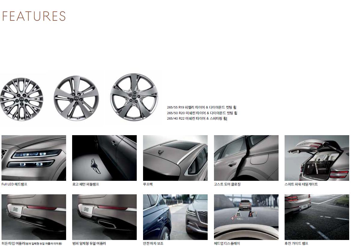 연료 탱크 용량은 약 80리터가 된다고 하네요. 아무래도 정숙성과 엔진 성능을 보시는 분이라면 가솔린 엔진을 선택할 것 같고, 초반 가속력과 연료를 중요시하는 분이라면 디젤 엔진을 선택하지 않을까 생각됩니다.