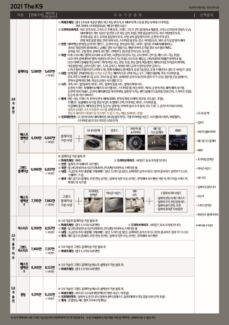 <2021 THE K9 가격표>