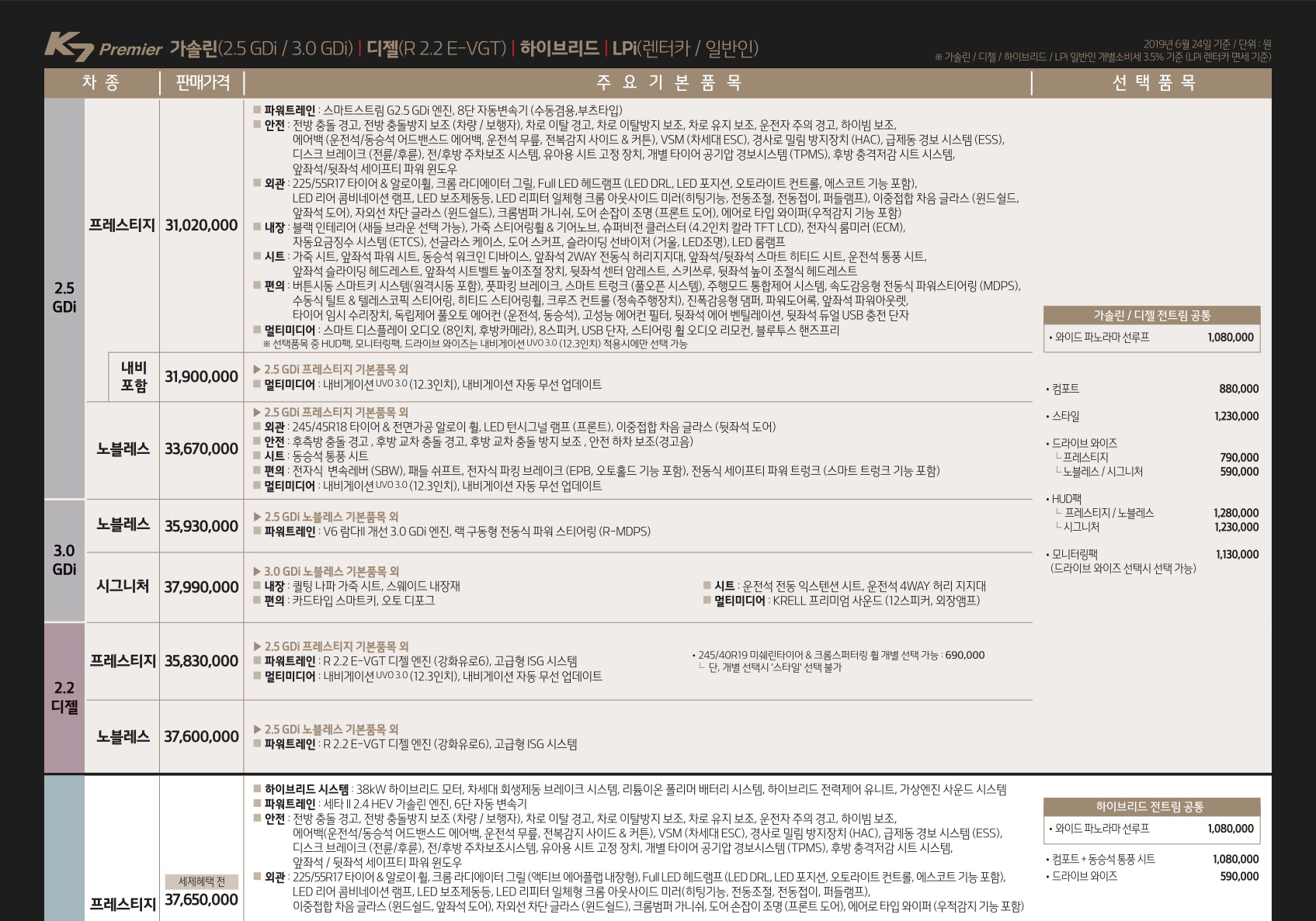 K7 프리미어 가격표 6
