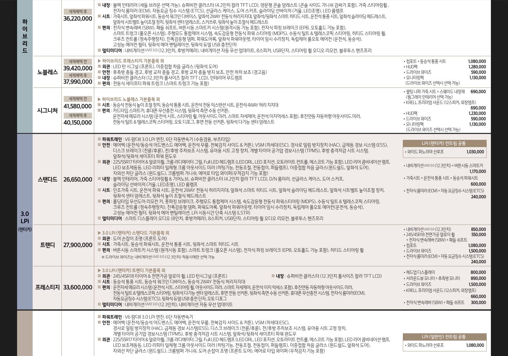 K7 프리미어 가격표 4
