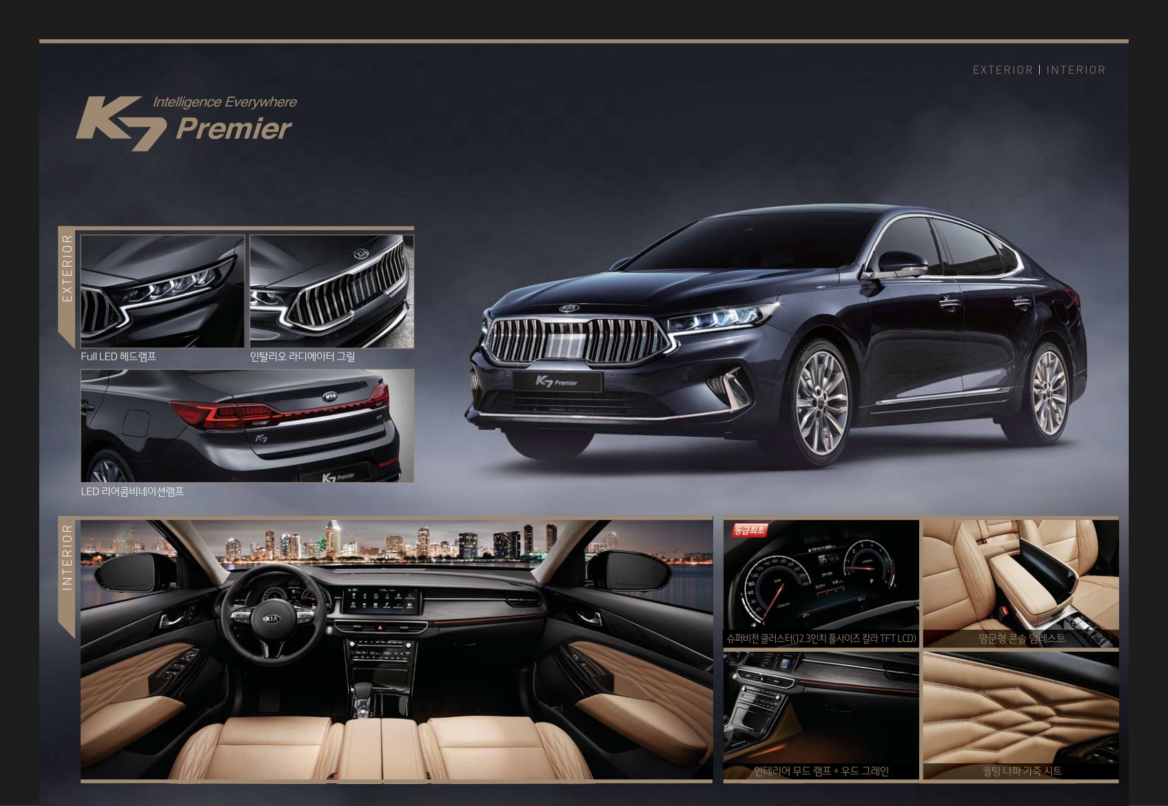 헤드램프는 그릴과 이어지는 방식으로 차량을 더욱 크게 보이게 하였으며, 헤드램프 하단으로 K7의 상징이었던 Z자 모형의 데일 라이트를 넣어 더욱 럭셔리한 느낌을 주고 있습니다.
