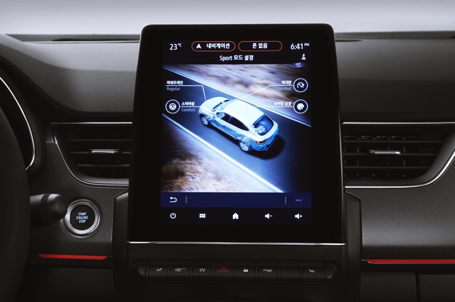 실내 인테리어는 르노삼성만의 매력이 느껴집니다. 대시보드의 센터패시아 중앙에는 9.3인치 디스플레이가 적용되어 르노삼성의 디자인 철학을 반영한 느낌입니다. 이는 스마트폰을 보듯이 편안한 시인성을 주는 것 같습니다.