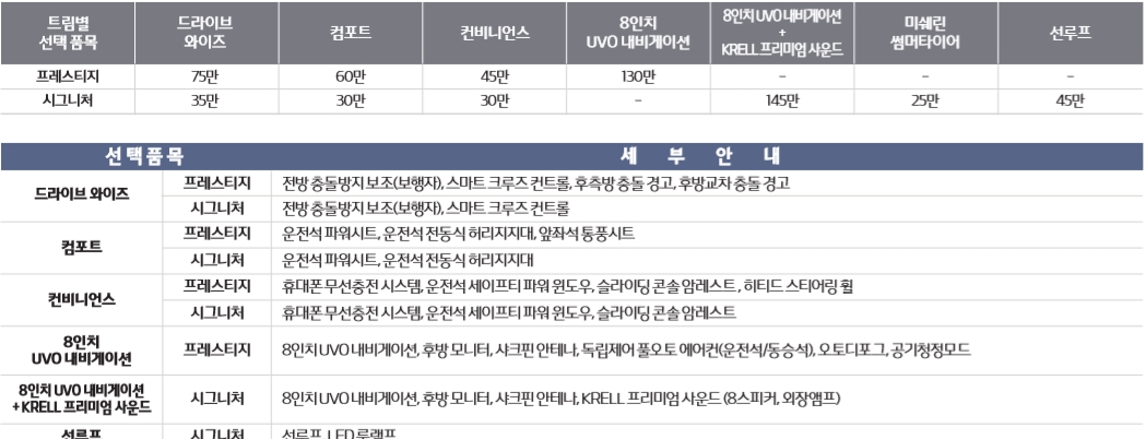 더욱 고객의 선호가 높은 것을 기본 적용하고, 기존 선택할 수 없었던 기능을 낮은 트림에서도 선택을 가능하게 하여 더욱 상품성이 강화된 것 같아요.