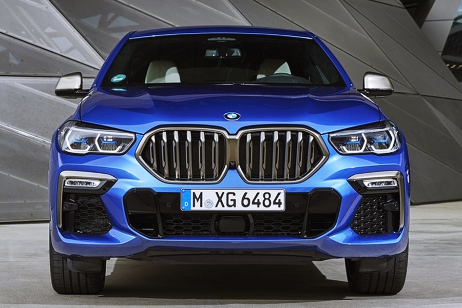 그러면, 2020년형 BMW X6 풀체인지 모델의 디자인을 간단히 살펴볼게요. 전면부 디자인은 BMW의 전형적인 패밀리룩을 잘 이어가고 있는데요. 전면에 큼직하게 자리하고 있는 BMW의 상징 키드니 그릴은 LED 라이트로 구성된 조명식 키드니 그릴을 적용하여 더욱 고급스러운 느낌을 주고 있어요. 그릴에 조명까지 넣은 신선한 생각은 정말 놀랍네요. 헤드램프의 경우에도 BMW의 모습답게 멋진 디자인이 반영되었고, 프런트 범퍼에는 공기 흡입구를 매쉬 타입으로 제작하여 고성능 자동차 같은 느낌을 주고 있어요.