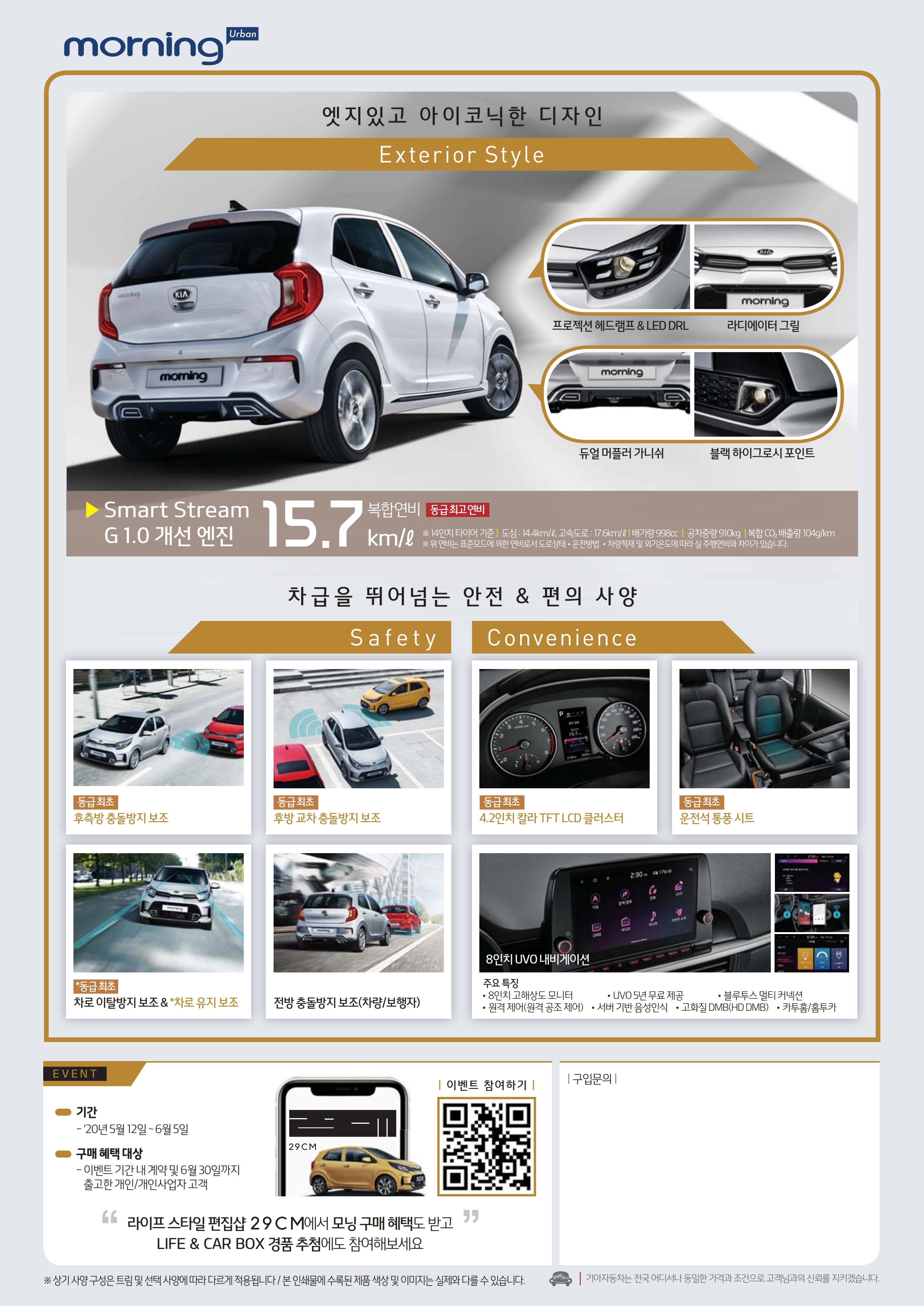 대한민국을 대표하는 자동차 모닝이 페이스리프트 되어 돌아왔습니다. 기아자동차에서는 신형 모닝 어반을 출시하였는데요.