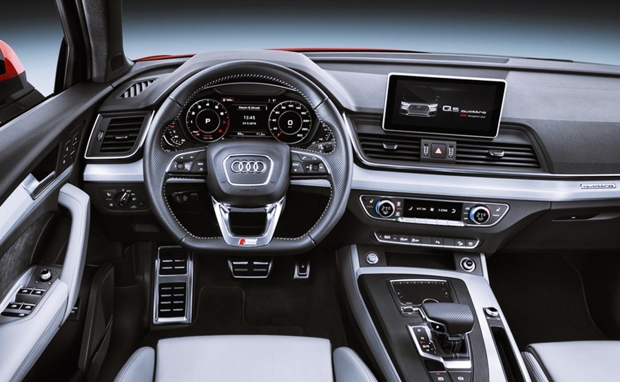아우디 Q5 모델의 실내의 경우 아우디 모델답게 최신 첨단 사양이 적용되었습니다. 버추얼 콕핏으로 불리는 12.3인치 계기판에서는 지도와 연동을 통해 더욱 편리한 주행을 도와주며, 10인치 인포테인먼트 시스템을 적용하여 더욱 시인성을 높였습니다.
