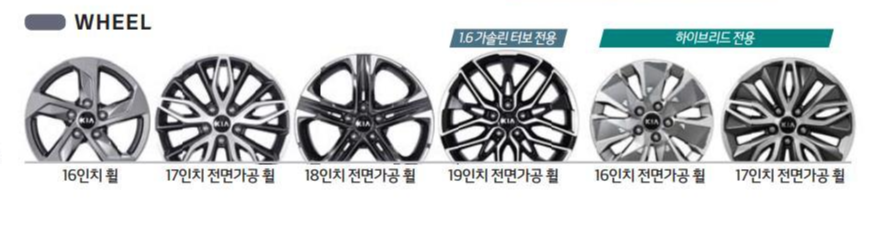 트림에 따라서 휠의 차이를 두는 부분입니다. 하이브리드 모델의 경우 노블레스 트림까지 16인치 휠이 적용됩니다. 다들 아시겠지만, 하이브리드의 경우 16인치 휠에 생각보다 휠 디자인이 별로인 것 같습니다. 노블레스 트림 정도 가면 17인치 정도는 넣어줘야 하지 않겠습니까? 물론 연비에 초첨을 맞추다 보니 그런 점은 이해하겠지만, 휠 트림 세분화를 통해 고객 선택의 폭을 넓혀줬으면 좋겠습니다.