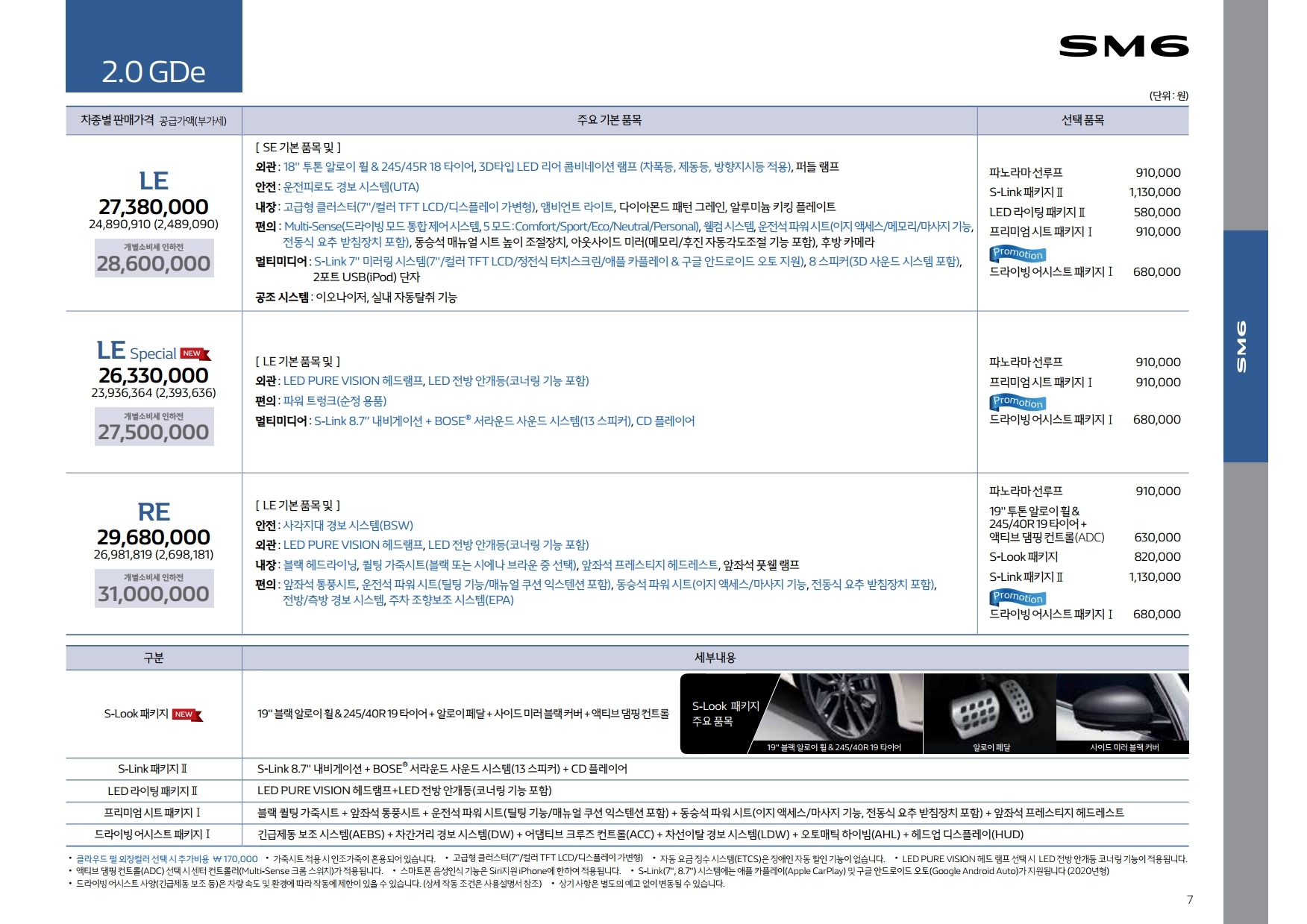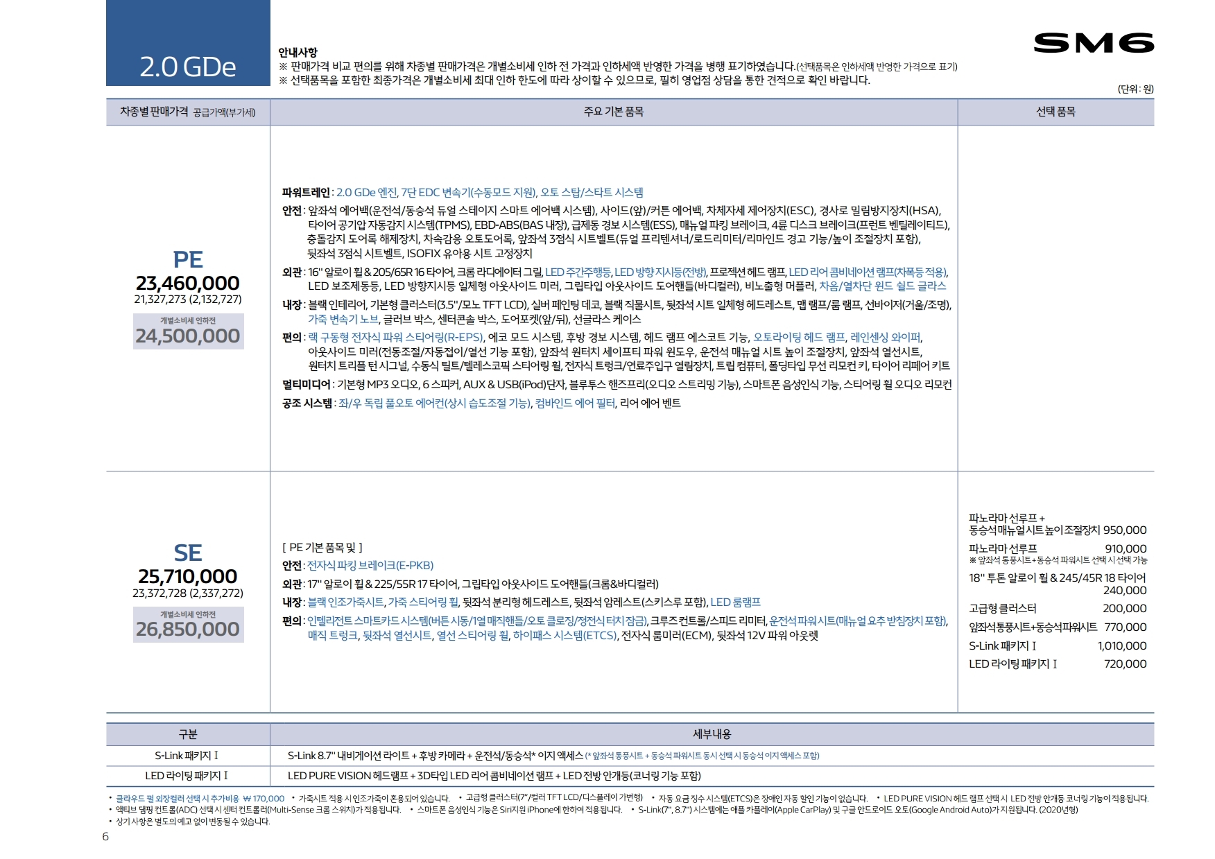 <SM6 가격표 (2020년 5월)>