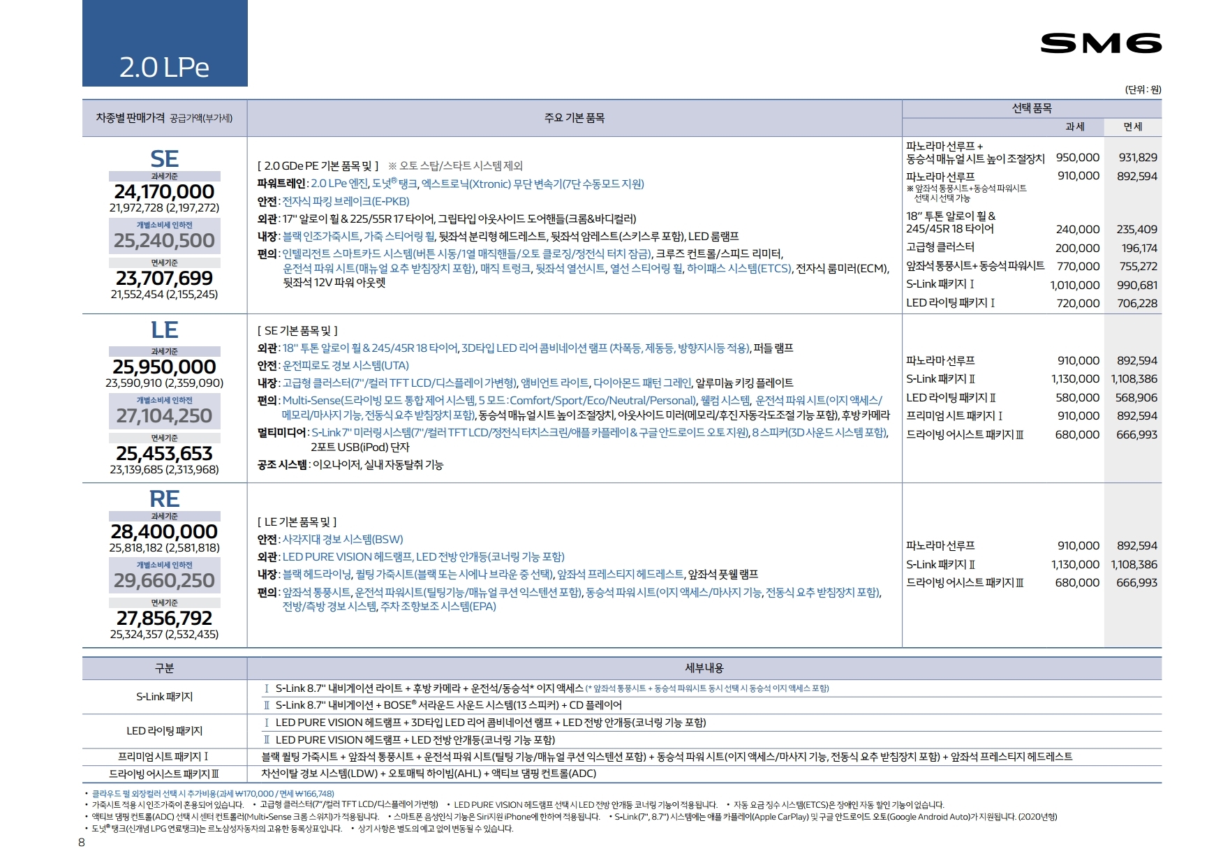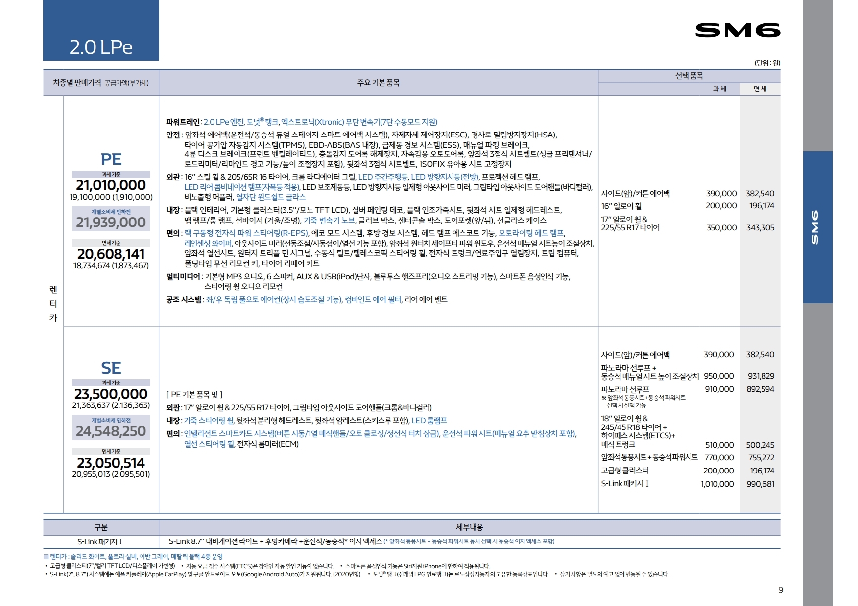 2020 SM6 LPG 최신 가격표