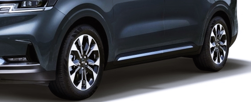 카니발 풀체인지 모델의 휠 아치에는 굴곡을 더 넣어 더욱 신경을 많이 쓴 모습입니다. 필러 부분에는 투톤 느낌의 하이그로시 소재를 적극 사용하여 고급감을 올리는 동시에 시선을 사로잡고 있습니다.