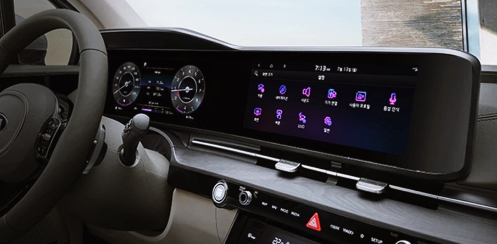 실내 인테리어는 첨단 사양을 대거 적용하여 더욱 많은 소비자의 관심을 모았는데요. 12.3인치 클라스터와 내비게이션이 통합된 파노라마 디스플레이는 미래지향적인 카니발의 모습을 보여주고 있습니다.