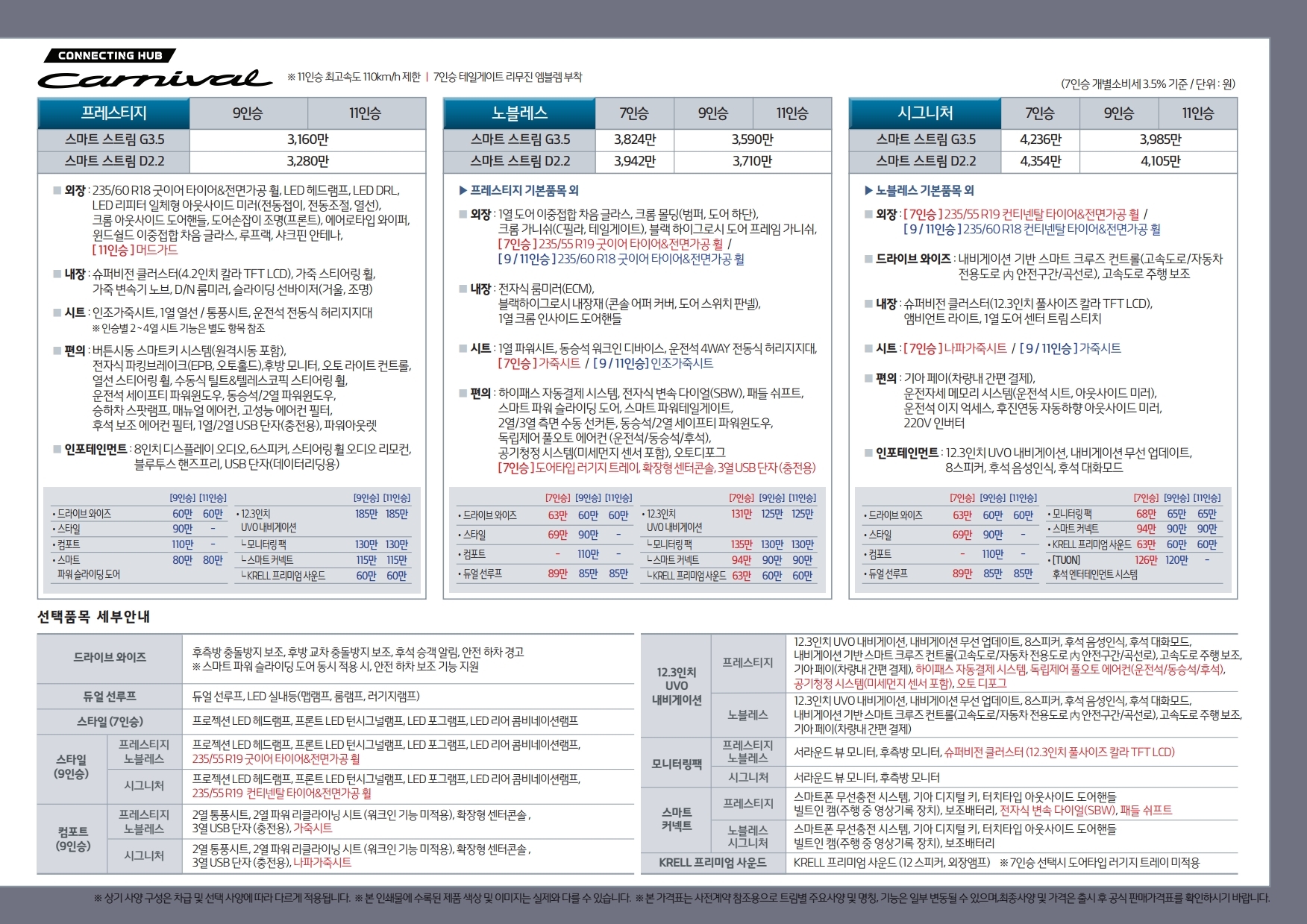 카니발 풀체인지 가격표