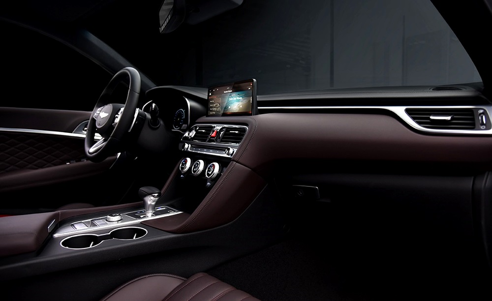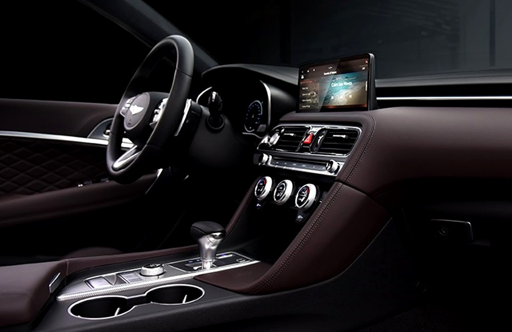 제네시스 G70 페이스리프트 모델의 실내 인테리어는 마치 전투기 조종석을 닮은 운전자 중심 구조를 사용한 느낌을 주고 있습니다.