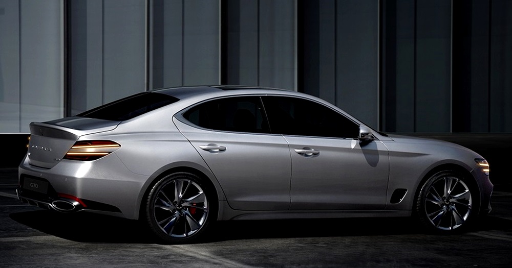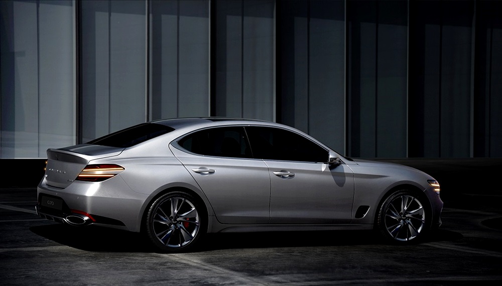 또한, 공력 효율에 최적화된 사이드 벤트 기능을 적용하여 기능과 동시에 디자인에서도 만족스러운 모습을 보여주고 있습니다. 휠 디자인도 역동적으로 제작이 되어서 신형 제네시스 G70 페이스리프트 모델의 차별점을 생각하고 만들었다는 것을 느낄 수 있습니다.