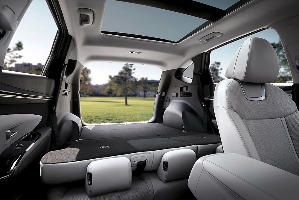 현대자동차 투싼 신형 모델은 3세대 플랫폼을 적용하여 더욱 최적화된 실내 설계를 통해 소비자의 편의성을 넓혔는데요. 전장이 기존 대비 150mm 상승하고, 휠베이스가 85mm 상승하여 2열 레그룸을 더욱 확보하였습니다. 그로 인해 2열의 경우 기존 대비 80mm 상승한 공간을 가지고 있어 2열 공간은 중형 SUV급의 실내를 보여준다고 합니다.