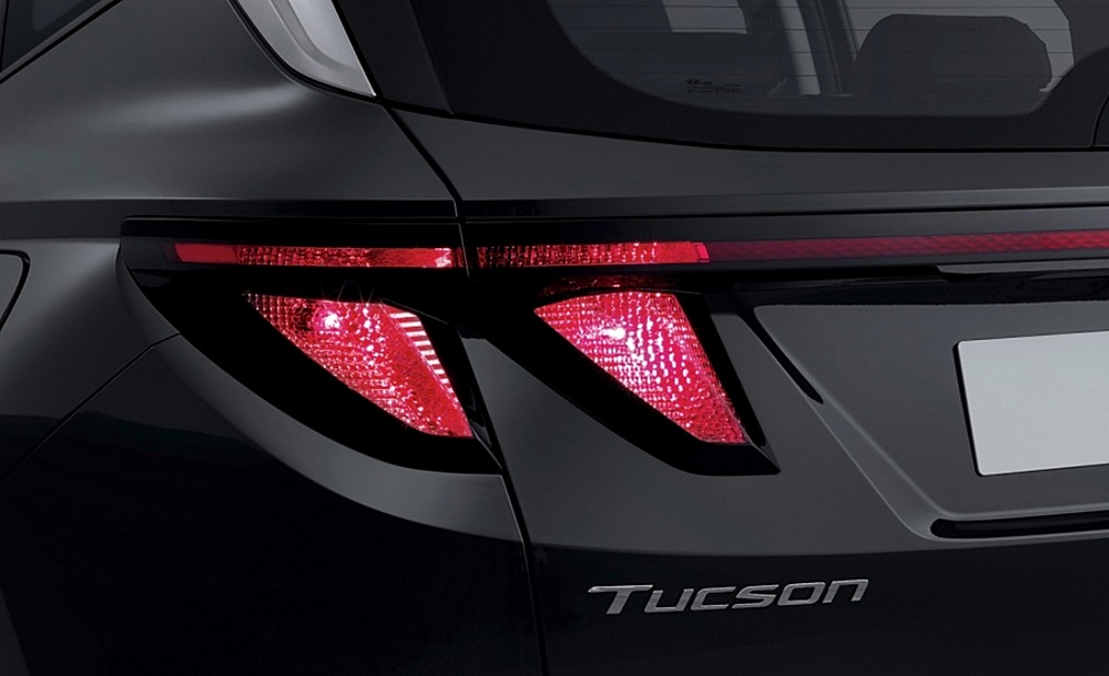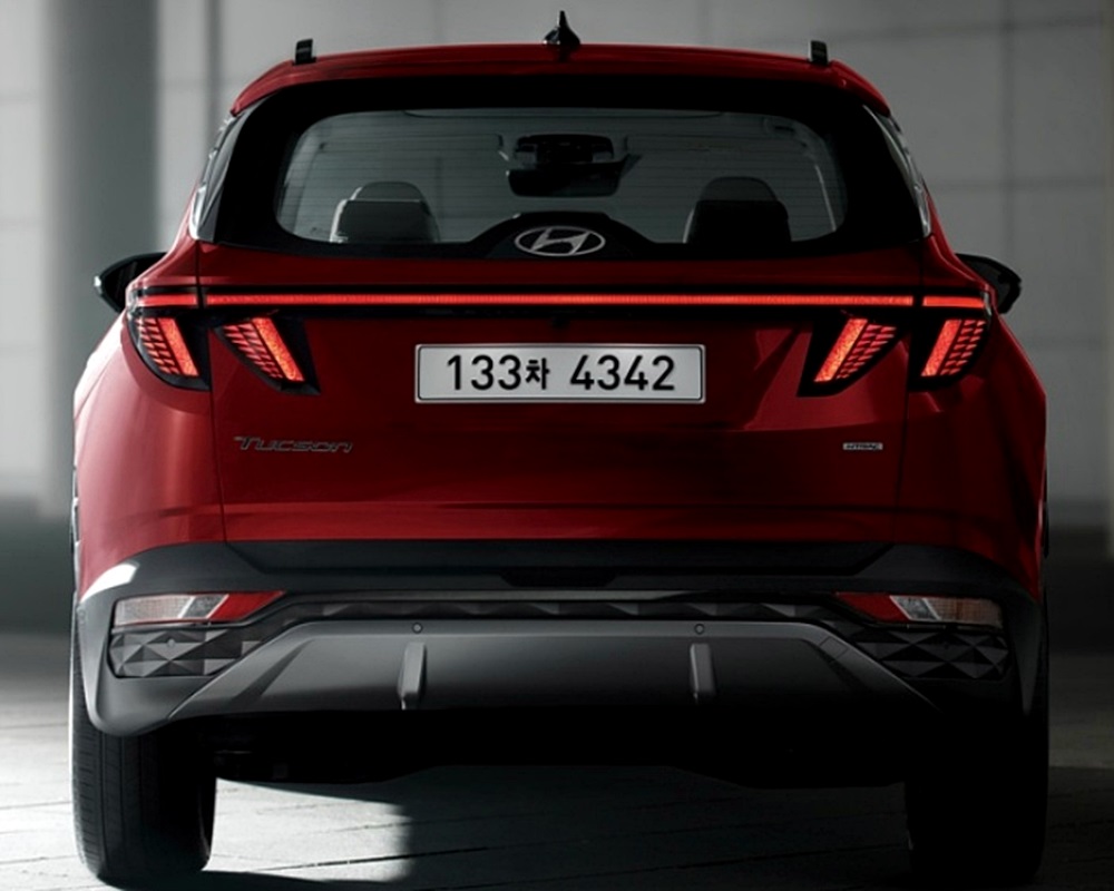 후면부 디자인은 수평으로 연결된 테일램프 디자인이 눈에 들어오는데요. 검정 테두리 위에 파라메트릭 히든 램프를 적용하여 후미등 점등시 삼각형을 형상이 모습을 드러내는 히든 라이팅 기법을 사용하였다고 하네요. 상당히 독특한 공법이 들어간 신형 투싼이네요.