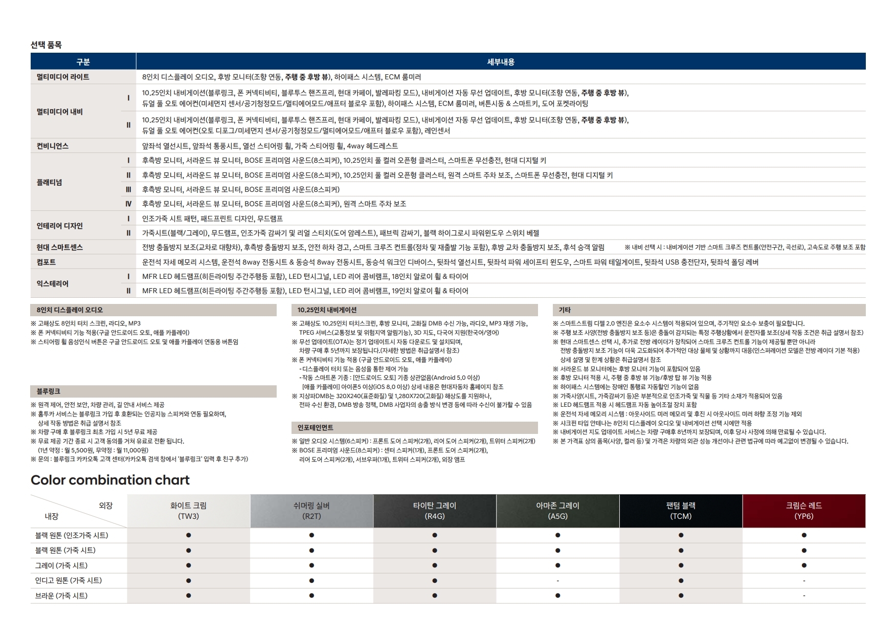 10월 경에는 하이브리드 모델 가격이 별도로 공개가 될 예정이라고 하네요. 조금 더 자세한 투싼 가격은 아래의 가격표를 참고해주시면 되겠습니다.