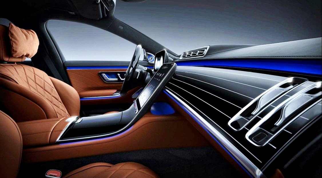 벤츠 S클래스 풀체인지 모델은 12.3인치 터치스크린은 기존 LCD 방식에서 현 OLED 방식으로 변경이 되어 에너지 소비 30%가 감소되었습니다. 또한, MBUX 인포테인먼트 시스템이 적용되어 음성인식을 통해서 더욱 편리한 작업을 수행할 수 있게 되었습니다. 이는 2열에서도 사용이 가능합니다. 또한, 2열에는 11.6인치 엔터테인먼트 모니터가 있으며, 각기 다른 7명까지 사용자 프로필을 저장할 수 있습니다.