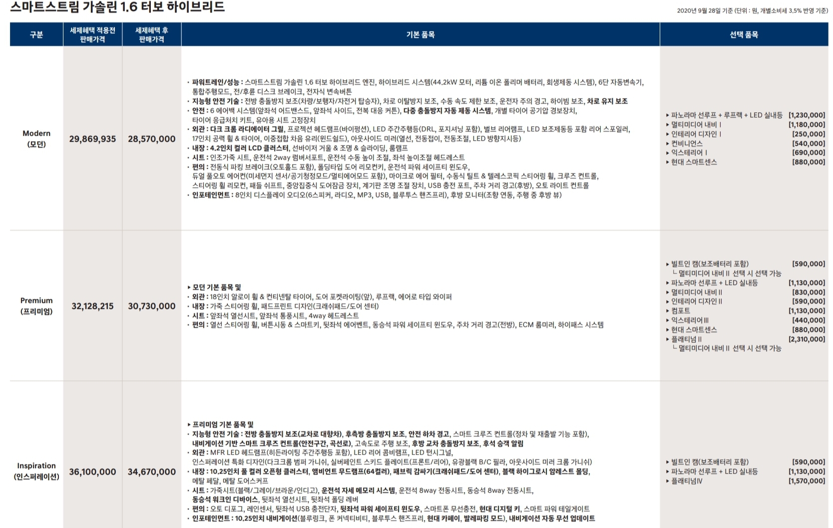 | 2021 더 뉴 코나 가격표 하이브리드 가격표 (0) | 2020.10.19 |