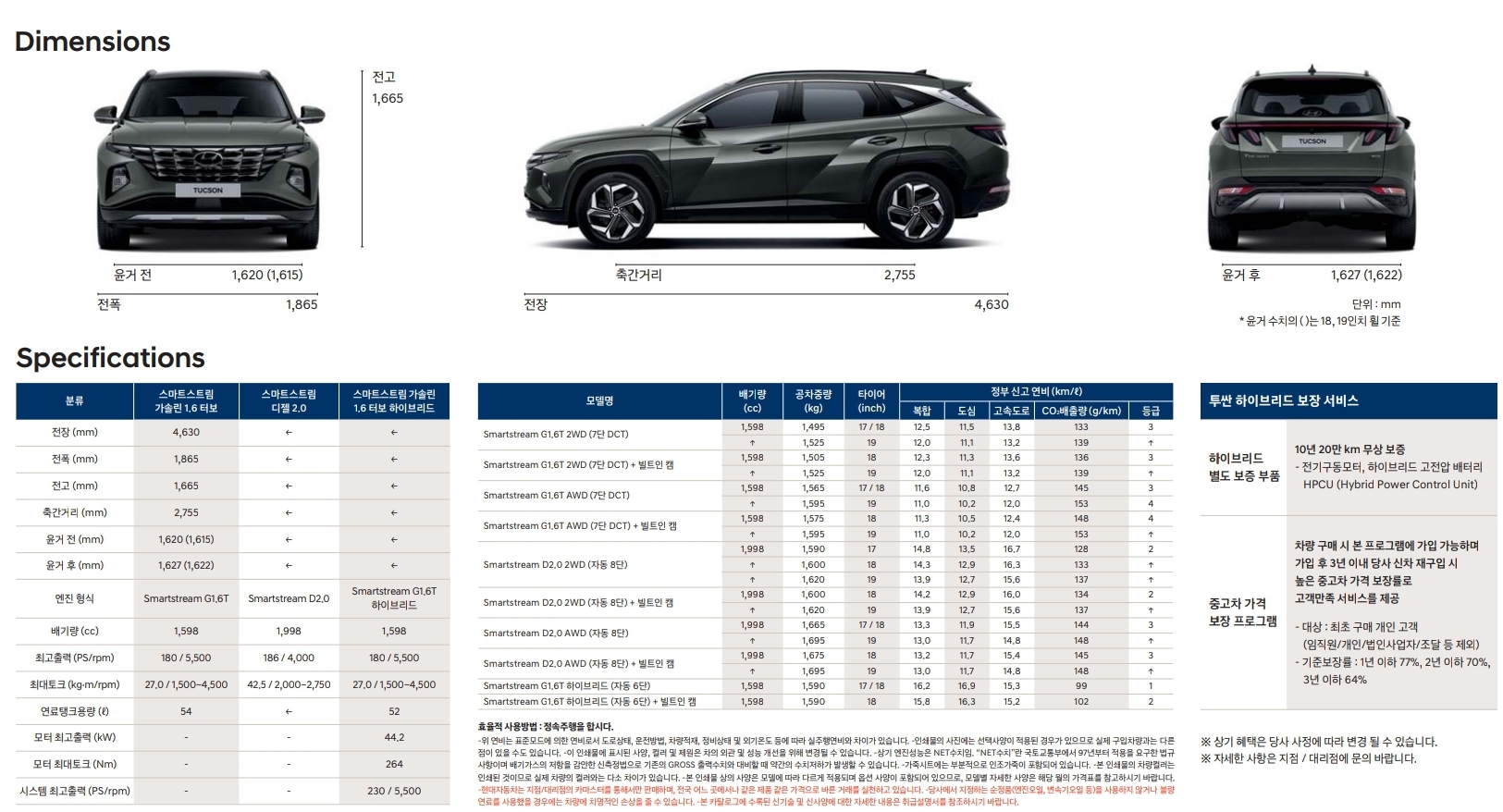 투싼 하이브리드 가격표 PDF 및 카탈로그