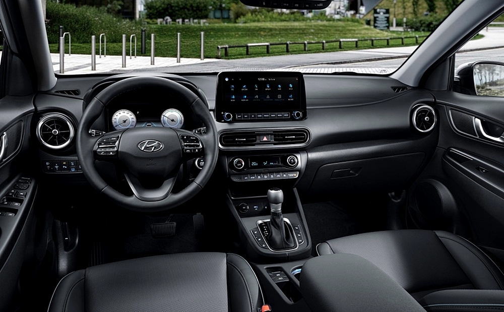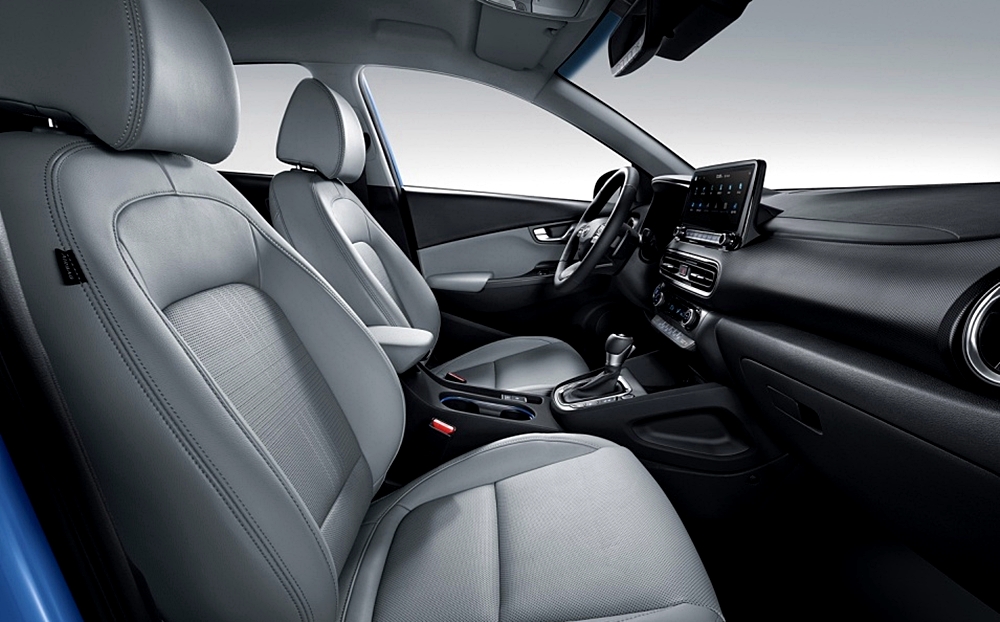 10.25인치 디스플레이 화면과 10.25인치 클라스터 화면은 더욱 진보된 코나의 느낌을 주고 있으며, 반광 느낌의 크롬 가니쉬 라인과 엠비언트 라이트 컵홀더는 하이테크 한 느낌을 살리기 충분해 보이네요.