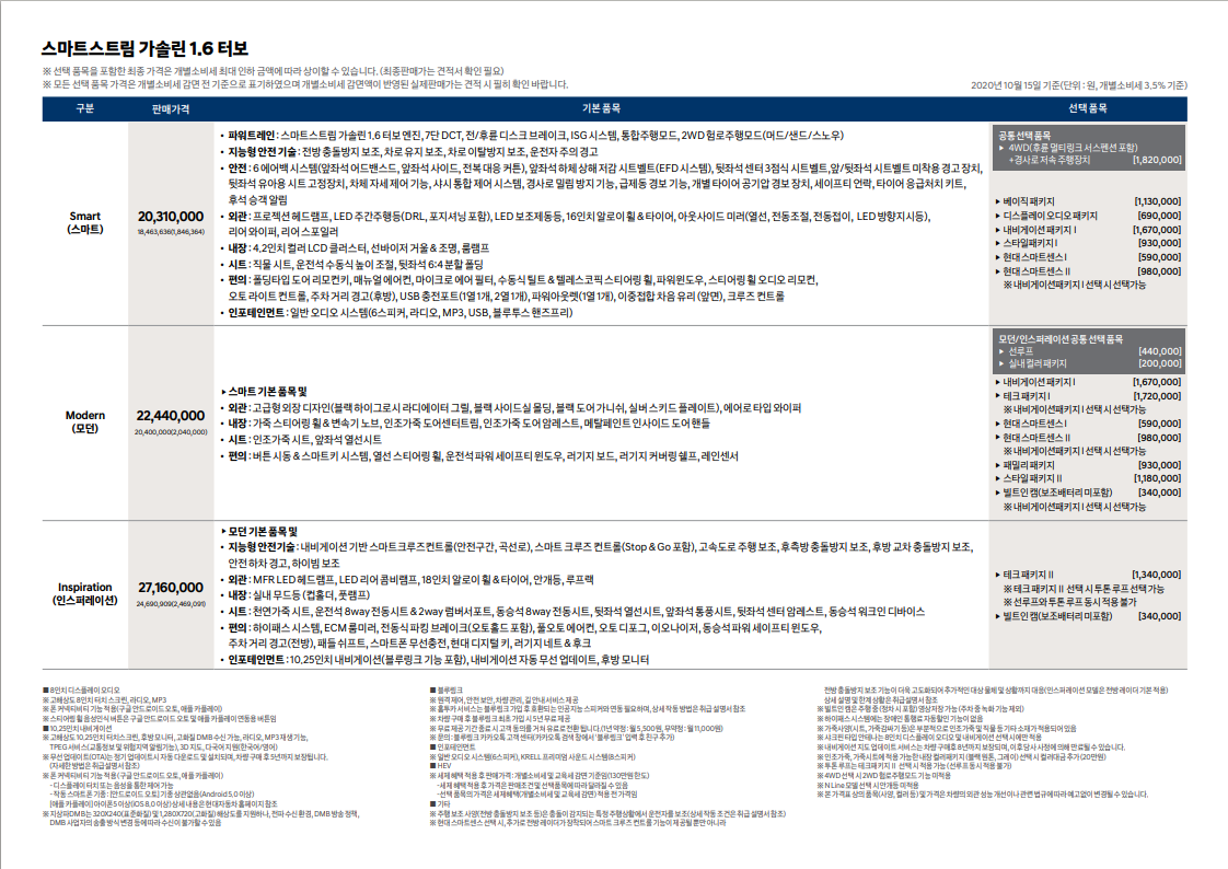 | 베뉴 가격표 상품성 강화(2021) (0) | 2020.10.23 |