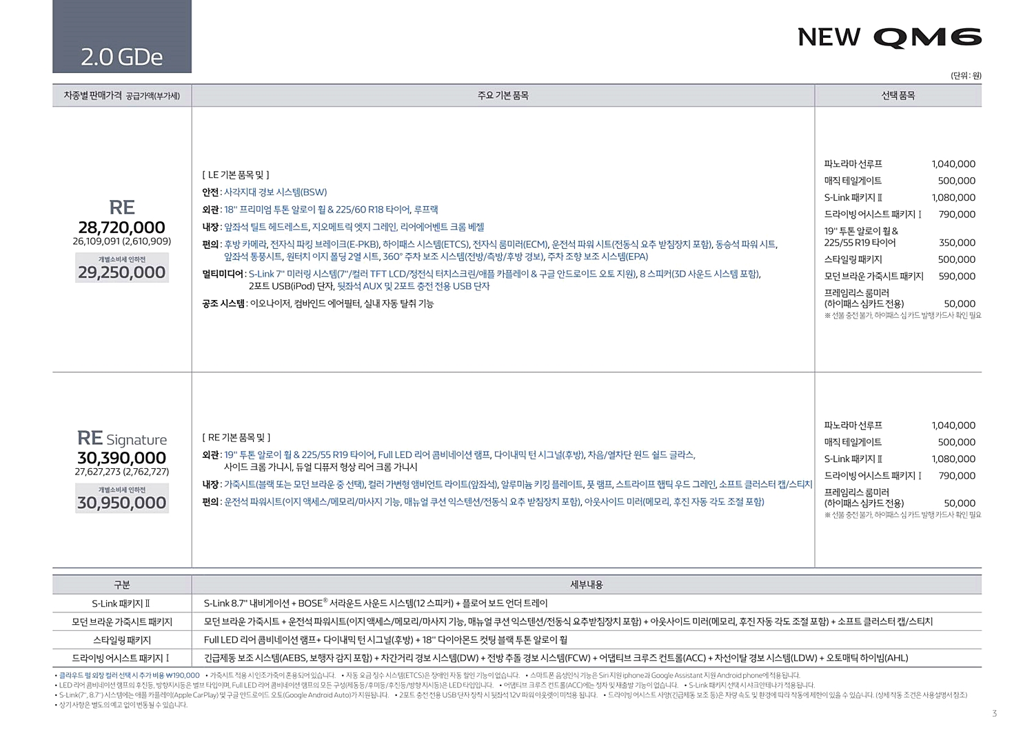 QM6 페이스리프트 모델의 판매 가격은 2435만 원~3324만 원으로 책정이 되었는데요. 중형 SUV에서도 멋진 디자인과 좋은 성능 합리적인 가격까지 갖추고 있어 더욱 많은 사랑을 것으로 보이네요. 자세한 가격은 아래의 2021 QM6 가격표를 참고하시면 도움이 될 것 같습니다.