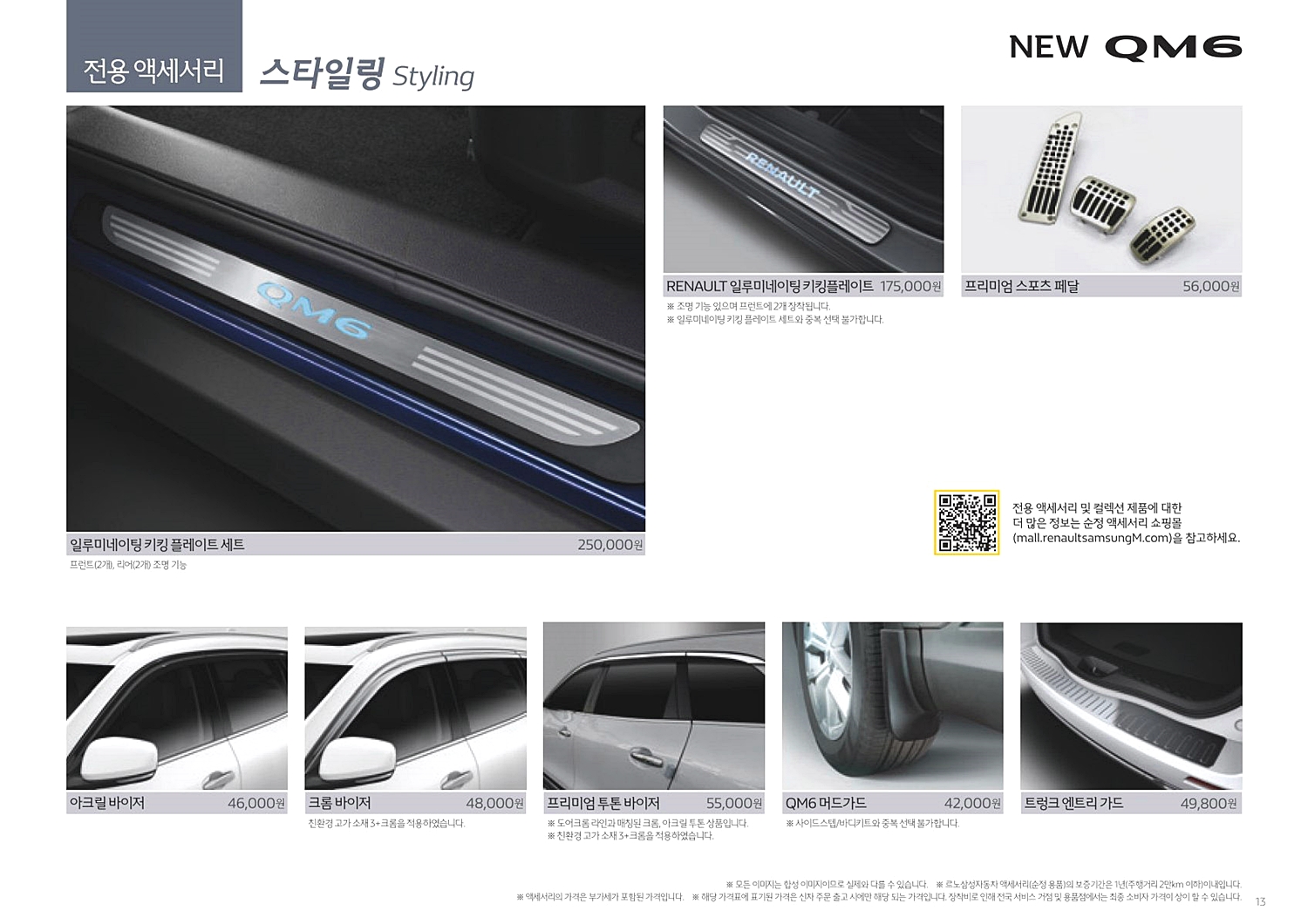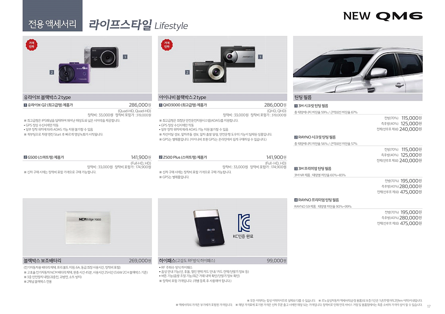 새롭게 추가된 프리미에르 트림의 경우 조금 더 고급스럽고 디테일한 외관 디자인과 실내 디자인을 사용하고 있는 모델로 이중 접합 차음 유리, 2열 사이드 프라이버시 글라스를 통해 더욱 정숙한 주행을 확보하고 있으며, 앞좌석 프레스티지 헤드레스트, 인조가죽 커버, 블랙 스티치, 소프트 콘솔 그립 핸들, 맵 포켓 인사이드 카페, 프리미에르 전용 로고 등을 적용하여 고급스러운 QM6 모델을 만나보실 수 있습니다.
