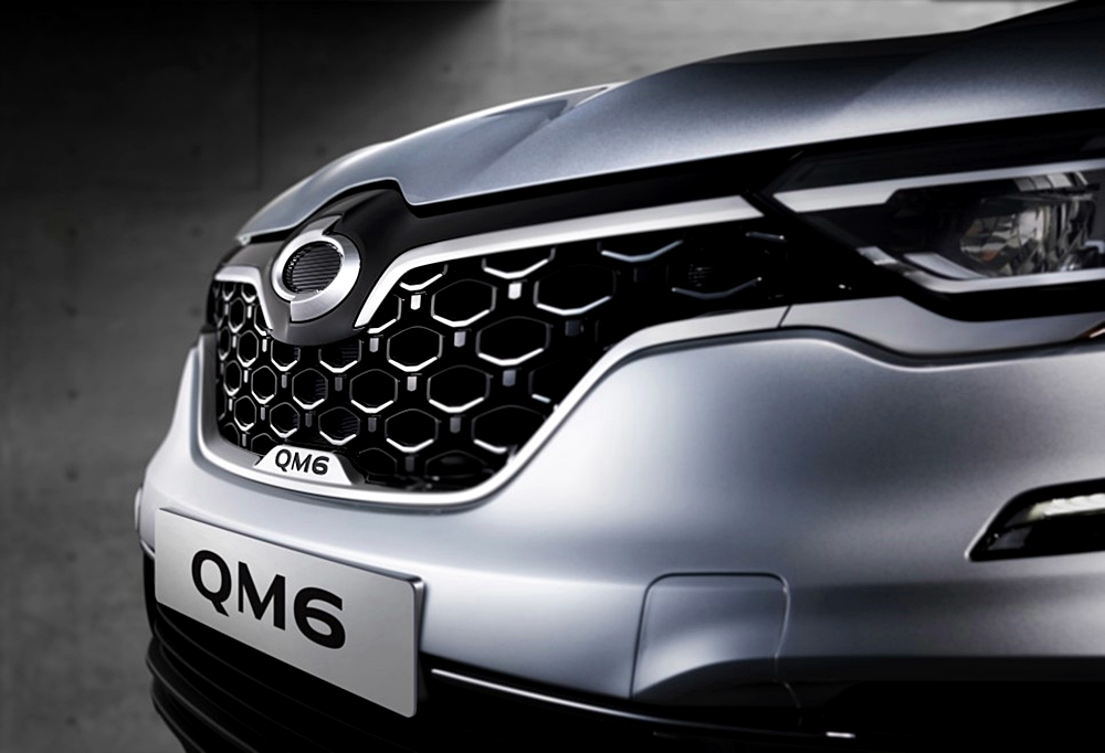 헤드램프에서 이어지는 라디에이터 그릴에 기존 QM6에서 볼 수 없었던 크롬으로 제작된 퀀텀 윙을 적용하여 멋진 느낌으로 제작되었습니다. 크롬 안쪽으로는 하이그로시 느낌을 주는 소재를 사용한 그물 모형의 패턴으로 스포티한 감성으로 더욱 젊어진 느낌을 주고 있습니다.